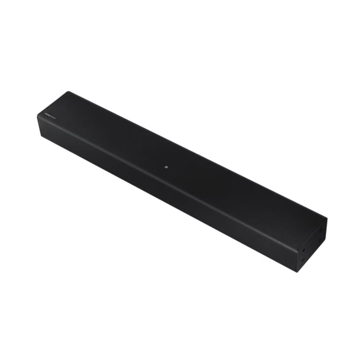 Enjoy wireless audio streaming and enhanced TV audio with the Samsung HW-T400 40W Stereo Soundbar. This sound bar features an optical input for digital audio connectivity to your TV as well as a 3.5mm input for analog wired devices. Bluetooth connectivity is built into the sound bar for wireless audio streaming from compatible devices like smartphones and tablets and wireless connection to compatible Samsung TVs. A remote control is included as an added convenience.