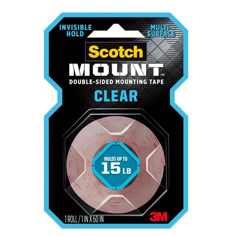 The Scotch 1 in. x 1.60 yds. Clear Indoor Permanent Double-Sided Mounting Tape offers a double-sided adhesion for secure mounting, providing a strong bond on both sides without the need for nails or screws. Its clear design makes it ideal for use on visible surfaces, ensuring a discreet appearance. Designed for a permanent hold, this tape is perfect for long-term applications. It is easy to apply with its peel-and-stick functionality, making it a versatile solution for mounting photos, posters, and light décor items. With a size of 1 in. x 1.60 yds., it delivers a compact yet effective solution for everyday use