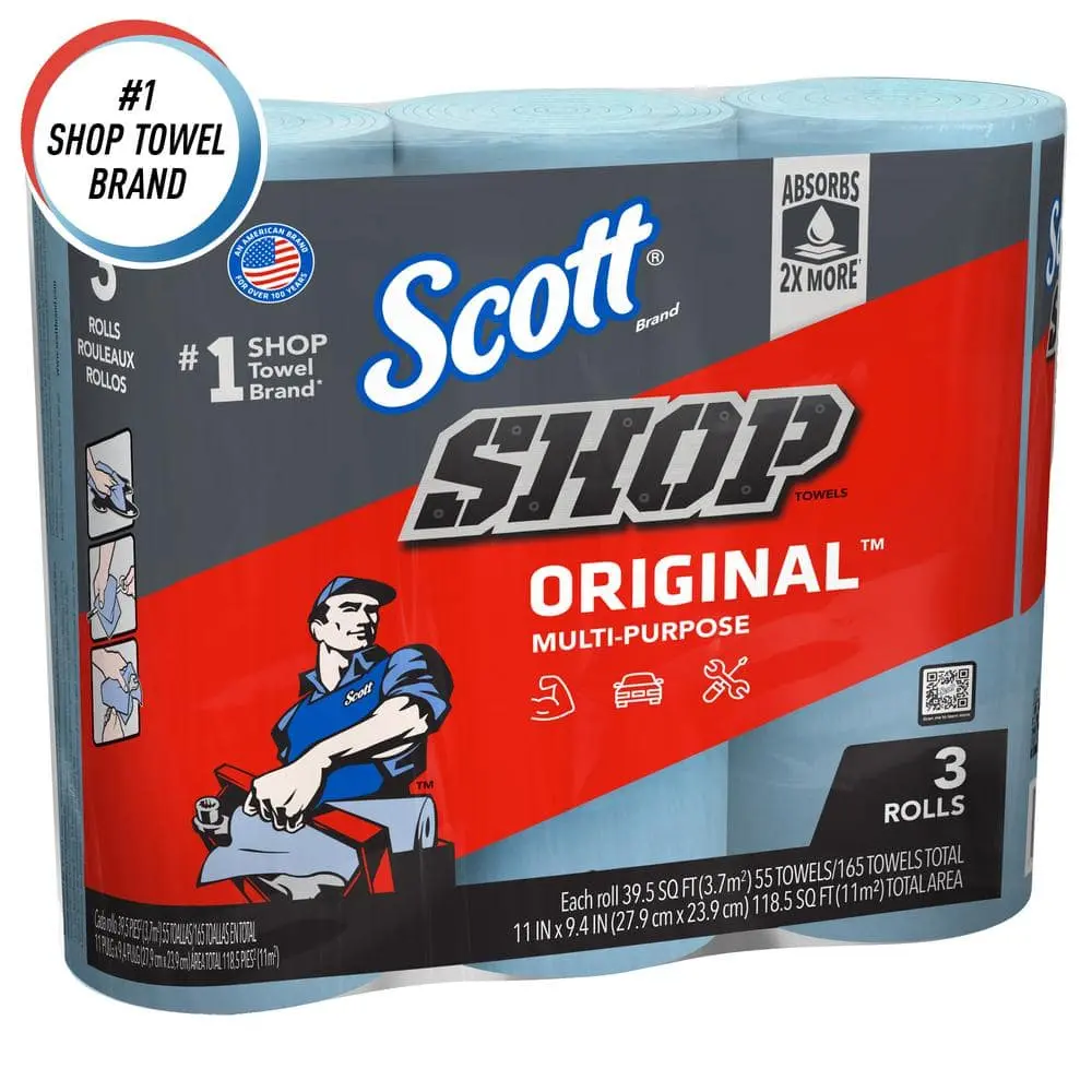 Scott Shop Towels Original (Blue) in standard rolls are an essential tool for automotive shops (painting, detailing, cleaning), DIY enthusiasts, or anyone tackling garage cleanups. These versatile towels are perfect for tasks like changing oil, refilling fluids, and general automotive maintenance. They’re designed to handle a variety of jobs with ease! The convenient standard roll is portable, features perforated towels, and fits in most paper towel dispensers. Whether you're detailing, cleaning, staining, or polishing, Scott Shop Towels Original are your reliable solution for getting the job done.