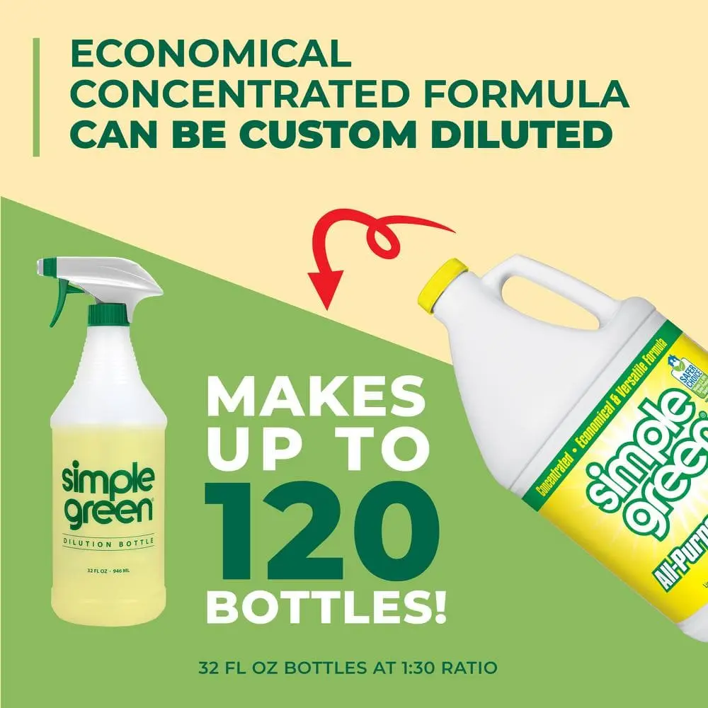 Simple Green Lemon All-Purpose Cleaner is an EPA Safer Choice Certified, powerful and biodegradable cleaner and degreaser. It removes tough dirt, grime, grease, food spills, ink, pet stains, and more without harmful chemicals. The concentrated formula offers up to 30x the cleaning value, and can be used full-strength for heavy messes or diluted for daily cleaning. Ideal for use on various surfaces like floors, carpets, countertops, appliances, and furniture, it replaces multiple harsh cleaners, making cleaning both effective and safer. Plus, it deodorizes with a refreshing lemon scent.