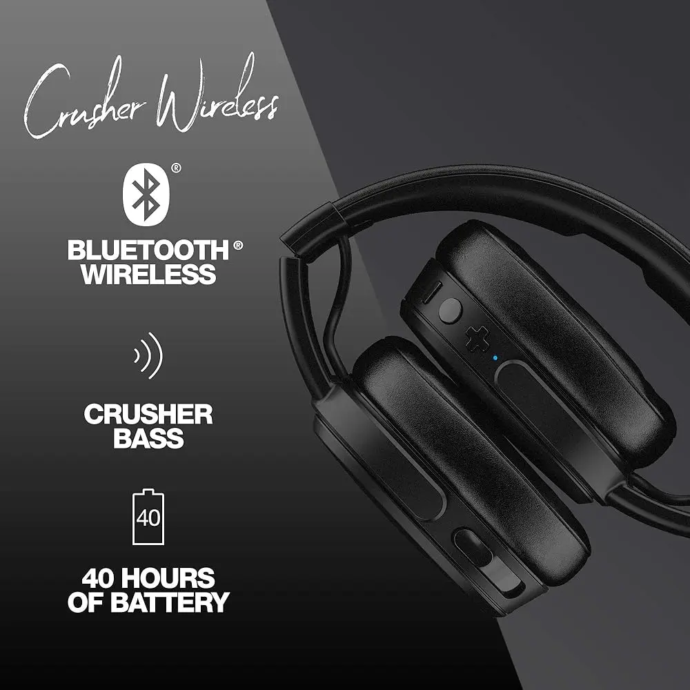 The Skullcandy Crusher Over-Ear Wireless Headphones are designed to deliver an immersive audio experience with enhanced bass and long-lasting comfort. Here are the key features: