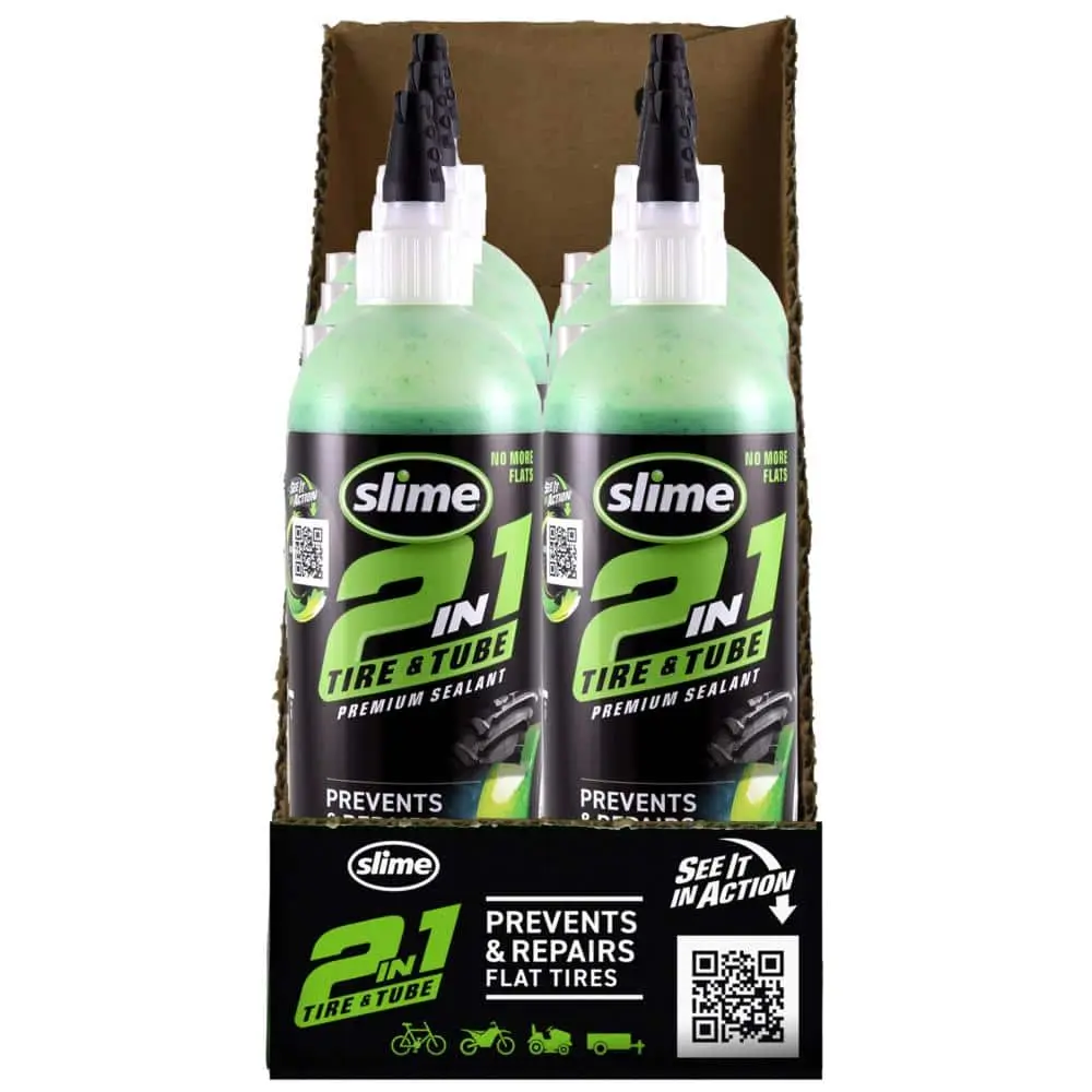 Whether your tire is tube or tubeless, Slime's 2-in-1 Tire & Tube Premium Sealant is designed to prevent and repair flats in all off-highway tires and tubes. This innovative sealant seeks out and instantly seals punctures up to 1/4" in tires and 1/8" in tubes. Upon a puncture, the pressure forces the sealant particles to fill the hole, creating a durable, flexible plug that blocks air loss and prevents flat tires. Ideal for a wide range of non-highway vehicles such as ATVs, golf carts, tractors, bikes, and more, it provides up to two years of continuous protection. Say goodbye to flat tires!