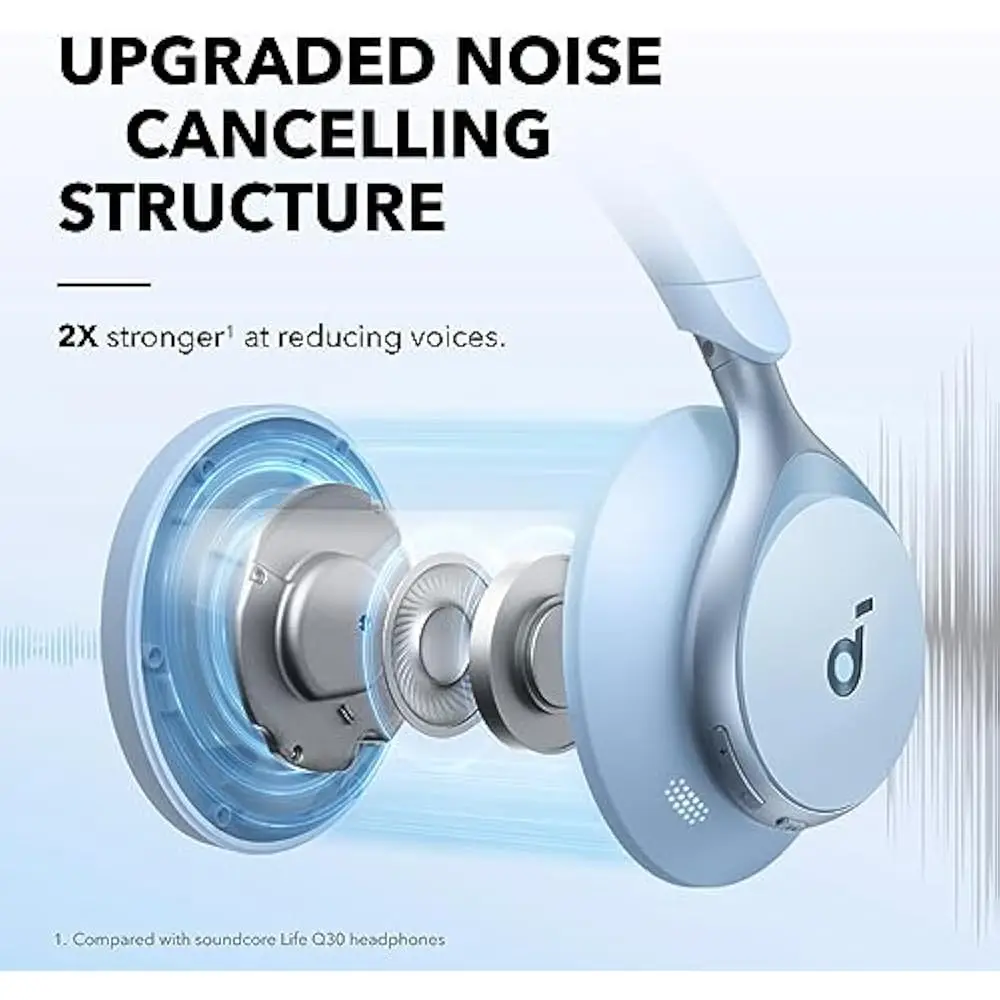 The Soundcore Space One headphones deliver 2X stronger voice reduction, 40 hours of ANC playtime, and LDAC Hi-Res audio for rich sound. With Bluetooth 5.3 and app control, enjoy smooth connectivity and personalized settings. The comfortable fit and clear calls make them perfect for long sessions, blending style with top-notch performance.