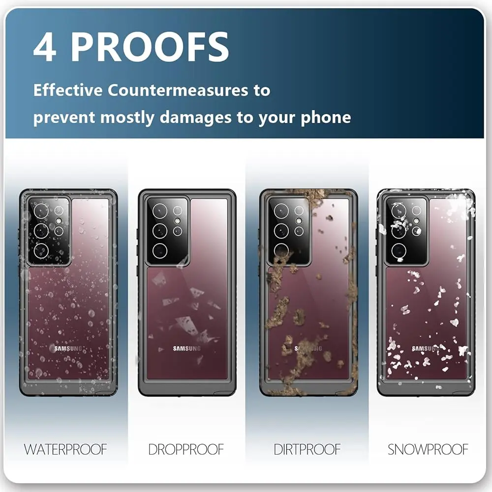 The SPIDERCASE Designed for Samsung Galaxy S22 Ultra offers robust protection with its heavy-duty, shockproof design, tailored to safeguard your device in any environment. This case features a built-in screen protector, offering full-screen coverage while keeping your display scratch-free. Its IP68 waterproof rating ensures your Galaxy S22 Ultra remains protected from water, making it ideal for underwater activities and outdoor adventures.