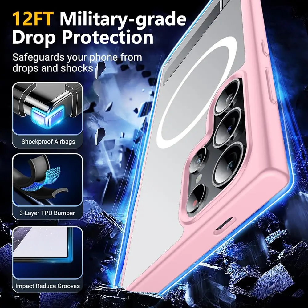 The SPIDERCASE Magnetic for Samsung Galaxy S23 Ultra Case offers premium protection while enhancing your device’s functionality. Specifically designed for the Samsung Galaxy S23 Ultra (6.8"), this slim, clear case combines robust military-grade protection with sleek aesthetics.