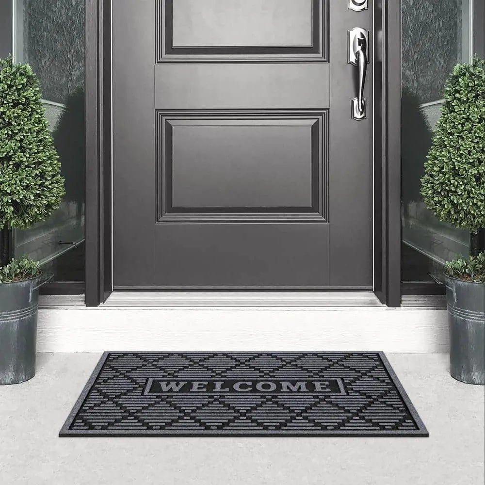 The StyleWell Diamonds Charcoal 24 in. x 36 in. Welcome Door Mat features a stylish charcoal-colored diamond pattern, adding a modern touch to your entryway. Made from durable coir, it’s designed for long-lasting use. The mat is equipped with non-slip backing, ensuring it stays securely in place for added safety. Ideal for outdoor spaces, this mat is easy to clean, requiring just a shake or vacuum to keep it looking fresh. Plus, it’s made from eco-friendly materials, offering both style and sustainability for your home