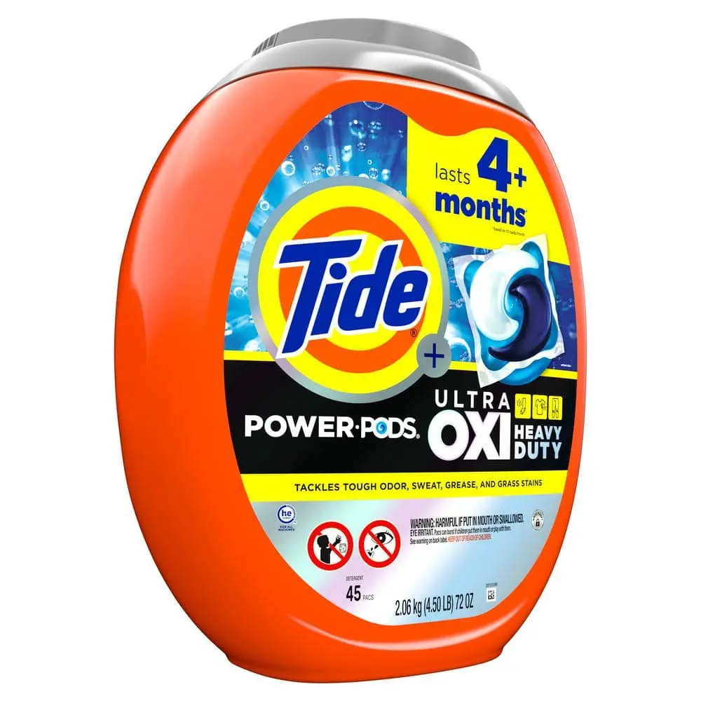 Tide Power PODs Ultra Oxi Plus Heavy-Duty Laundry Detergent is designed for hardworking clothes that need a detergent that delivers exceptional cleaning and fresh scent. With 3X more stain-fighting power, it easily tackles set-in stains, dirt, and tough odors—no pretreating needed. Its ultra-concentrated formula uses less water and more powerful ingredients, providing the best clean for your money, day after day. Compatible with all washing machines and water conditions, including cold water, Tide is trusted as the #1 laundry detergent brand in America* for consistent, reliable results every time.