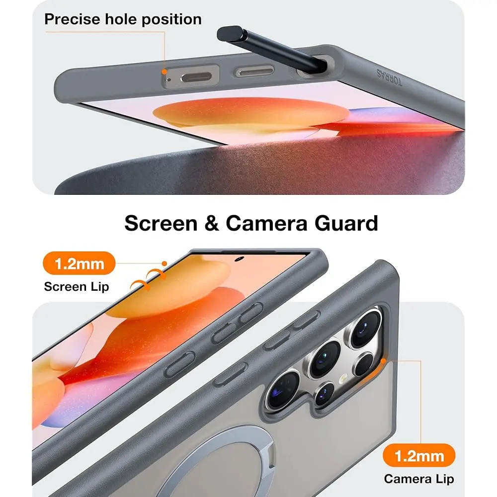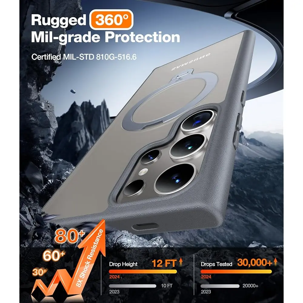 • Innovative Design: TORRAS Ostand Spin Series for Samsung Galaxy S24 Ultra combines a magnetic system, 360° rotating kickstand, and military-grade protection.