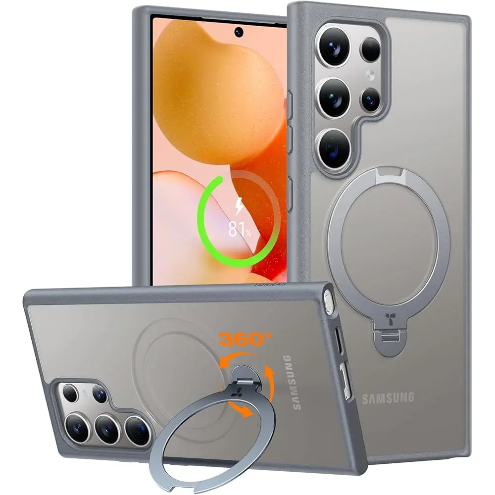 TORRAS 360°Spin Magnetic Kickstand for Samsung Galaxy S24 Ultra Case - Grey