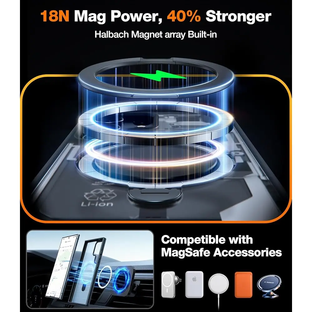• Strong Magnetic Force: Features 18N Halbach technology for a 40% stronger hold on car mounts and accessories, ensuring stability.