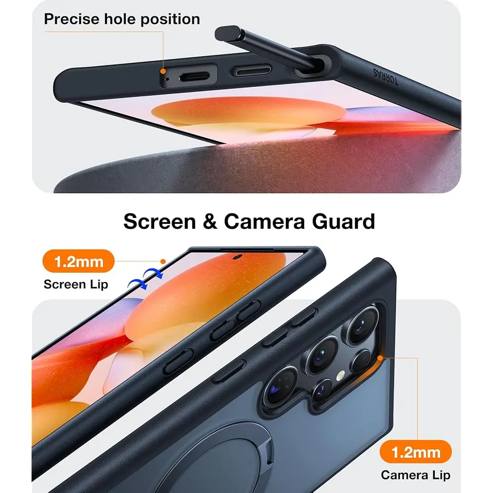 • Innovative Design: TORRAS Ostand Spin Series for Samsung Galaxy S24 Ultra combines a magnetic system, 360° rotating kickstand, and military-grade protection.