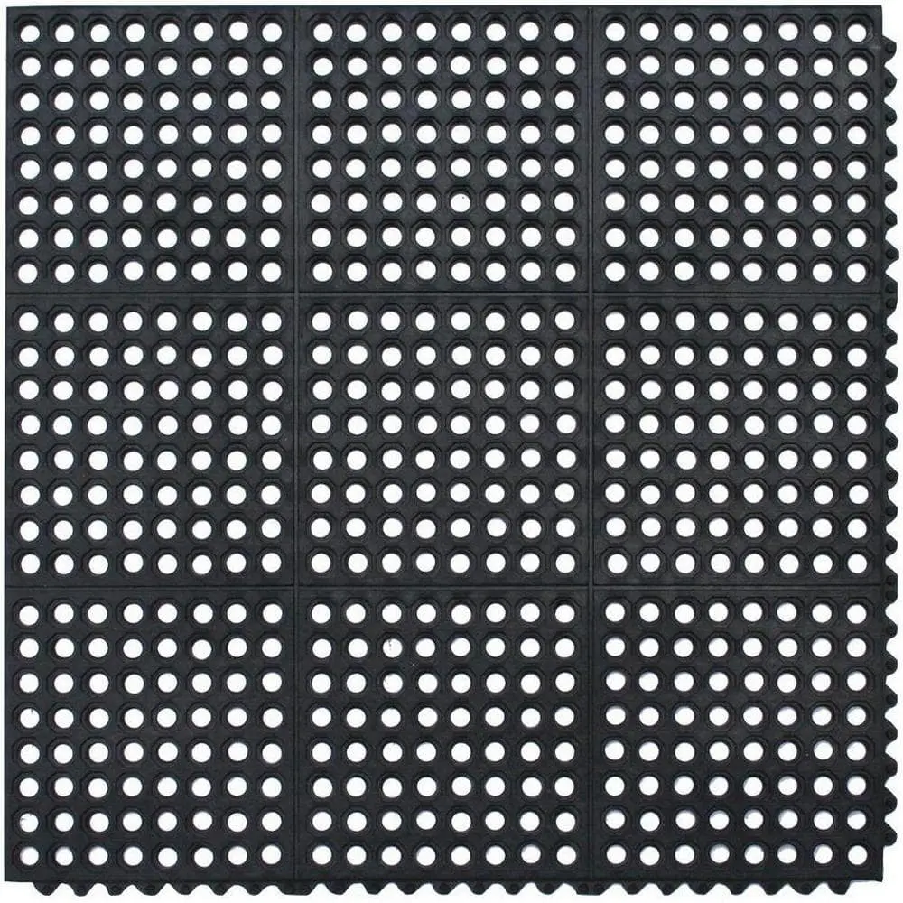The TrafficMaster Black Rubber Anti-Fatigue Indoor Comfort Mat is crafted to enhance comfort during prolonged standing with its anti-fatigue design, reducing strain on your feet and legs. Made from durable rubber material, this mat ensures long-lasting use and reliability. It measures 36 in. x 36 in., covering 9 sq. ft., offering ample space to stand comfortably. The non-slip surface provides extra traction, ensuring stability and safety. Easy to maintain, this mat is also easy to clean, resistant to dirt and spills, making it the perfect choice for any indoor environment