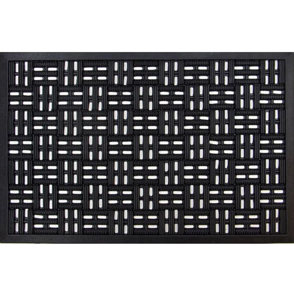 The TrafficMaster Black Rubber 17.5 in. x 29.5 in. Drainage Mat features a durable rubber construction that ensures long-lasting performance in high-traffic areas. Its open drainage design effectively prevents water buildup, making it ideal for wet environments. The slip-resistant surface enhances safety by providing better traction, reducing the risk of slips and falls. Designed for versatility, this mat is weather-resistant and suitable for both indoor and outdoor use. Plus, it is easy to clean, requiring just a quick rinse or wipe-down to maintain its functionality