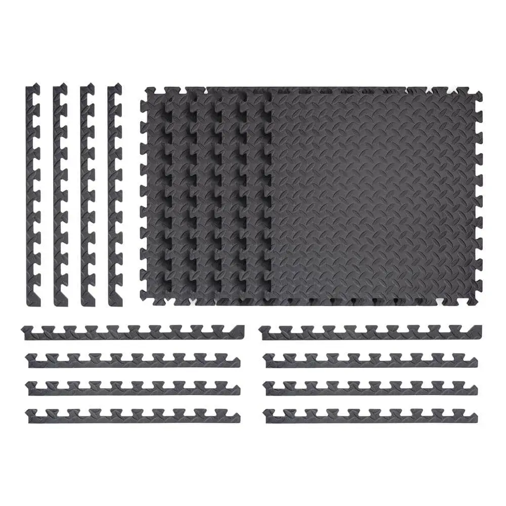 Transform your workout area with the TrafficMaster Gray Foam Exercise/Gym Flooring Tiles, designed for comfort, protection, and versatility. Made from high-density foam, these tiles provide excellent cushioning and impact absorption, reducing strain on joints during intense workouts. Each pack includes six 24" x 24" tiles, covering 24 sq. ft., with a 0.5-inch thickness to offer optimal support and floor protection. The non-slip surface ensures stability and safety while exercising. These tiles are lightweight and portable, allowing for easy rearrangement, and their easy interlocking installation makes setup a breeze. With a neutral gray color, they seamlessly fit into any home gym or fitness area