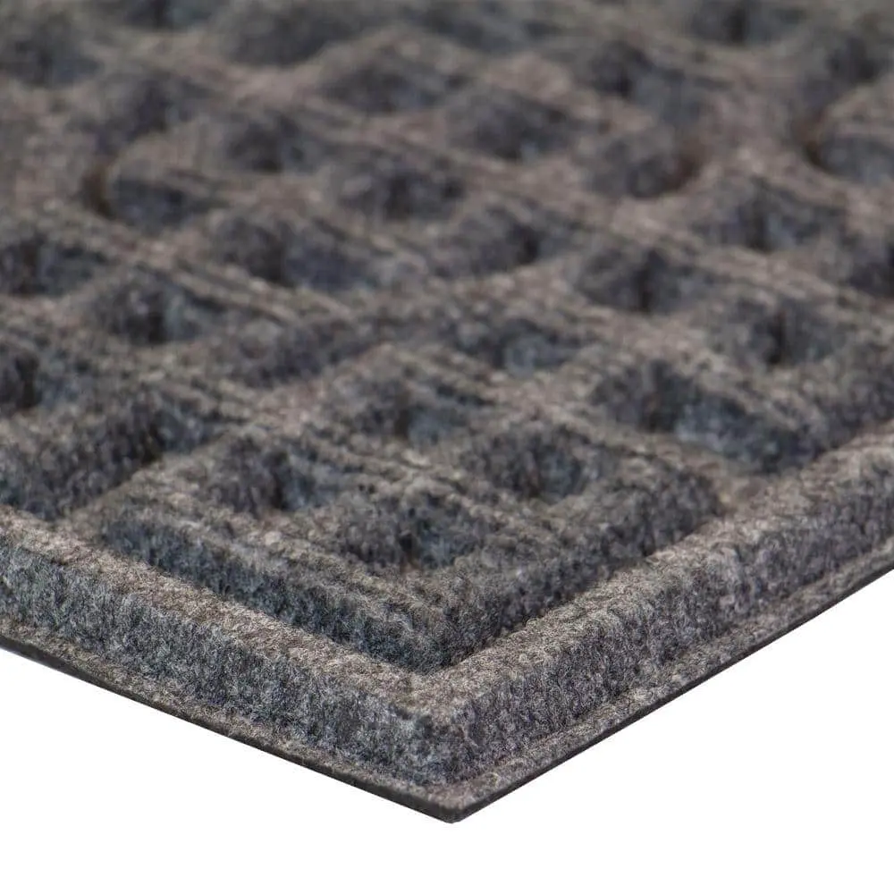 The TrafficMaster Gray Texture 18 in. x 30 in. Door Mat is designed for durability and functionality, making it a great addition to any entryway. Its textured surface effectively traps dirt and moisture, keeping floors clean. The neutral gray color blends seamlessly with various décors, while the non-slip backing ensures stability and safety. Built for both indoor and outdoor use, this weather-resistant mat withstands daily wear and tear. Easy to maintain, simply shake, sweep, or rinse to keep it looking fresh