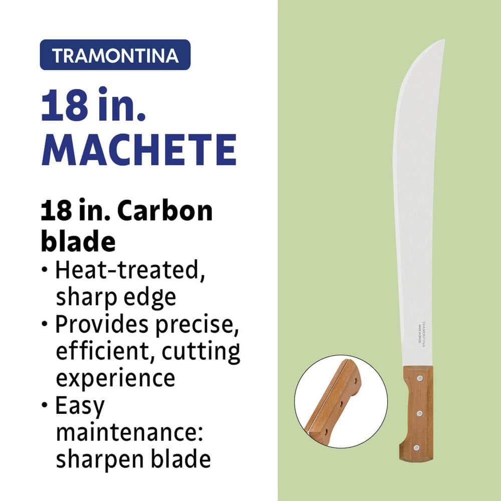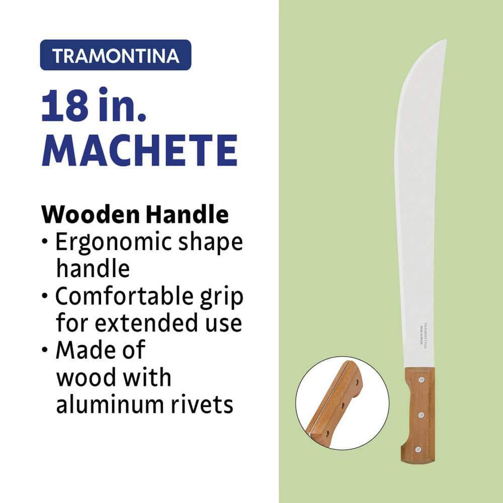 Elevate Your Yard Work with the Tramontina 18 in. Machete, designed for exceptional performance in all your outdoor tasks. Featuring a robust carbon steel blade and a comfortable wood handle, this machete is built to handle your toughest yard maintenance and utility needs with ease. The machete boasts a full tang blade for superior strength and balance, complemented by an ergonomic design for comfortable handling. The 18-inch heat-treated carbon steel blade, coated with a protective varnish, ensures impressive cutting power and long-lasting durability. Experience unmatched sharpness and resilience as you tackle your yard work, making the Tramontina machete an indispensable tool in your outdoor arsenal.