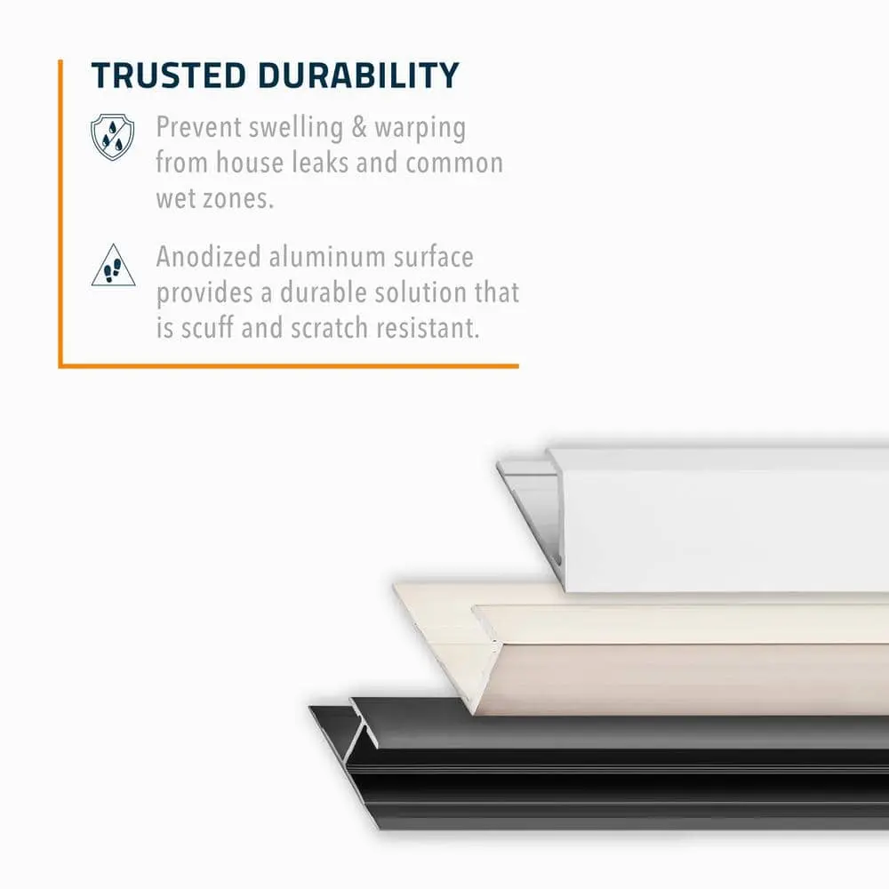 The TrimMaster Mineral Bronze Aluminum Reducer Floor Transition Strip offers a stylish and durable solution for transitioning between floors of different heights. Featuring an elegant mineral bronze finish, it complements a variety of flooring types, adding a sophisticated touch to your space. Made from strong aluminum, this transition strip is both corrosion-resistant and built to last. With an 8 mm thickness and 84 in. length, it provides ample coverage and protection for wider transitions. The reducer design ensures a smooth and seamless transition between floor levels, while the easy installation makes it simple to achieve a polished, professional look