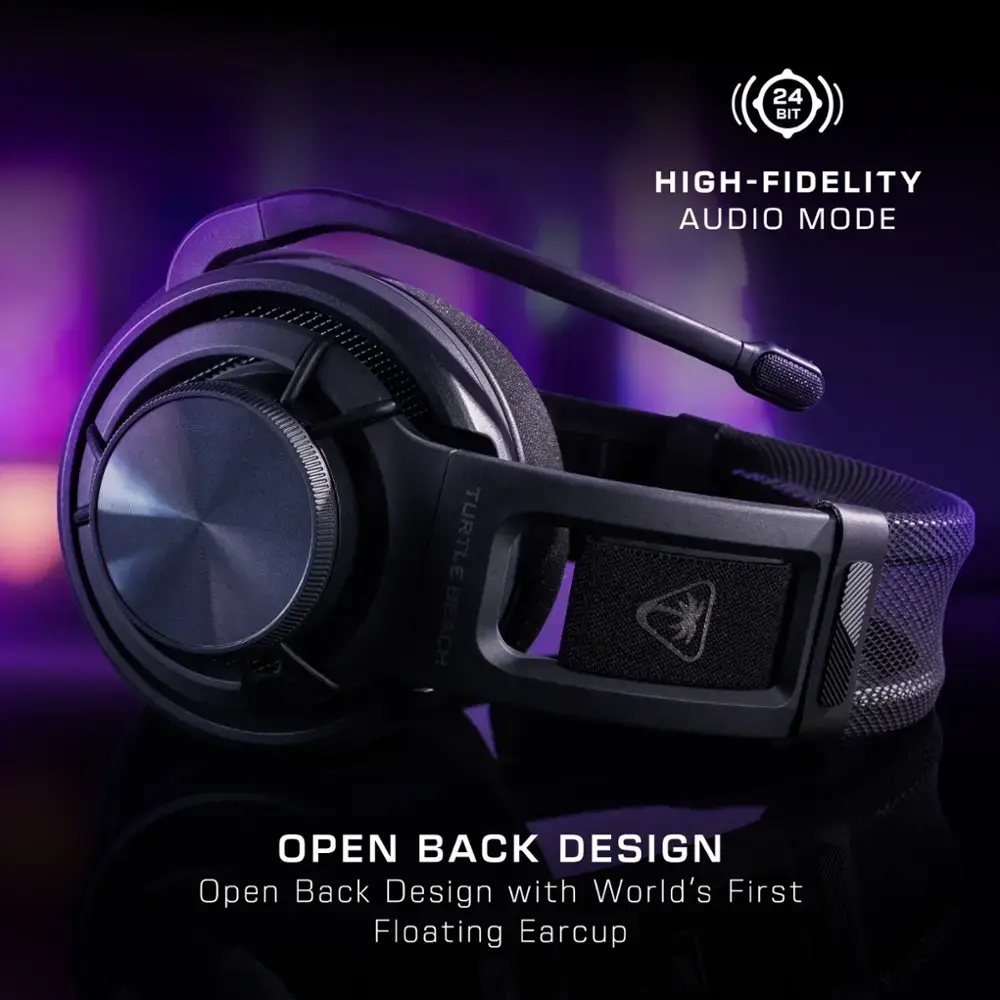 The Turtle Beach Atlas Air Wireless Open Back Gaming Headset offers an immersive audio experience with wireless connectivity, ensuring lag-free sound and freedom of movement during gaming. Its open-back design provides a more natural and open sound, enhancing the gaming atmosphere. The floating earcup design ensures maximum comfort, even during extended gaming sessions. Featuring high-quality 50mm drivers, the headset delivers crisp, detailed sound, and it’s compatible with PC, PS5, PS4, and mobile devices for versatile use. The noise-canceling microphone ensures clear communication, while the up to 15 hours of battery life allows for long-lasting playtime. Additionally, the on-ear controls provide easy access to volume adjustments and microphone muting