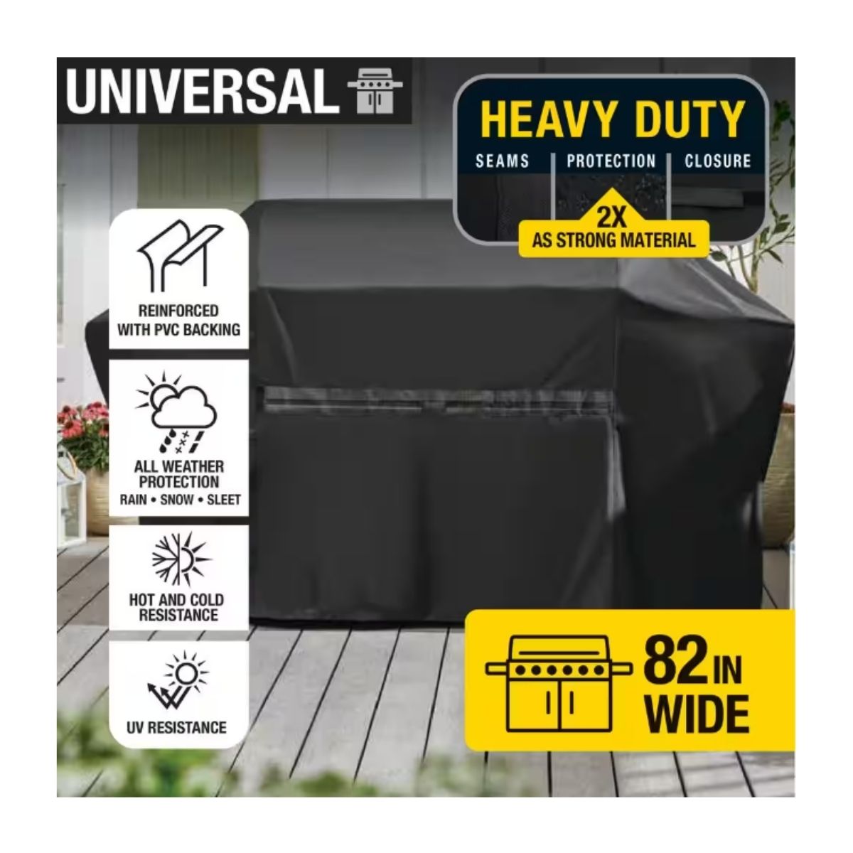Protect your grilling investment with the Universal 80 in. Premium Grill Cover. The heavy duty polyester coating provides maximum weather protection. Weather resistant coating provides an attractive grill cover for your patio.