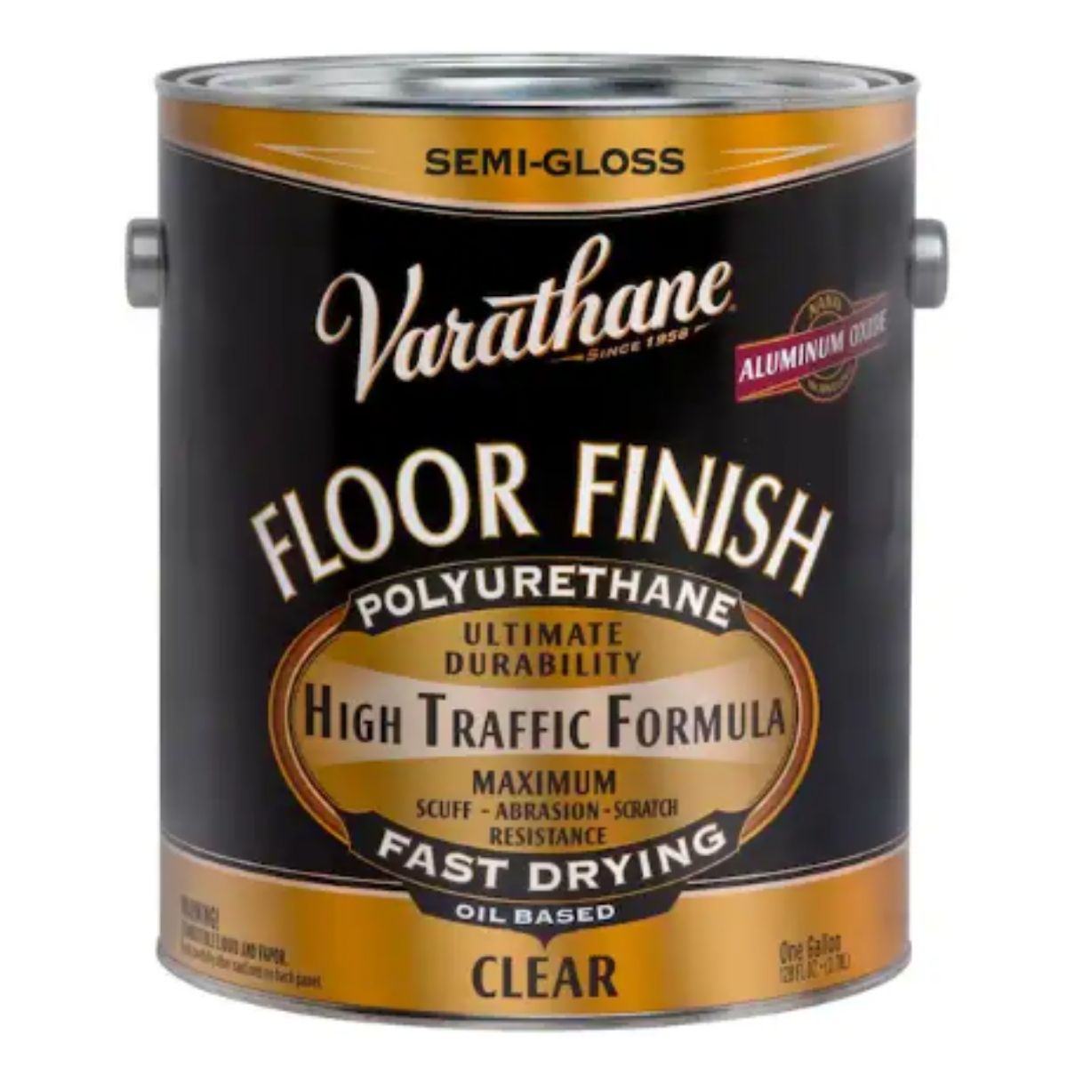 Varathane 1 gal. Clear Semi-Gloss Oil-Based Floor Finish Polyurethane is a high-performance product specifically formulated to provide durable protection for interior hardwood floors, particularly in high-traffic areas like kitchens and hallways. This polyurethane features a self-leveling formula that offers superior resistance to scuffs, scratches, and stains, ensuring that your floors maintain their pristine appearance over time. The semi-gloss sheen adds a subtle shine with a rich golden glow that deepens as the finish ages, contributing to a warm and classic look for your wood floors. Known for its long-lasting durability, this polyurethane also provides excellent abrasion resistance. It dries quickly, allowing for recoating in just 4 hours after the initial application, and cleanup is easy with mineral spirits. Overall, it's an excellent choice for homeowners looking to protect and enhance the beauty of their hardwood floors with a professional-grade finish.