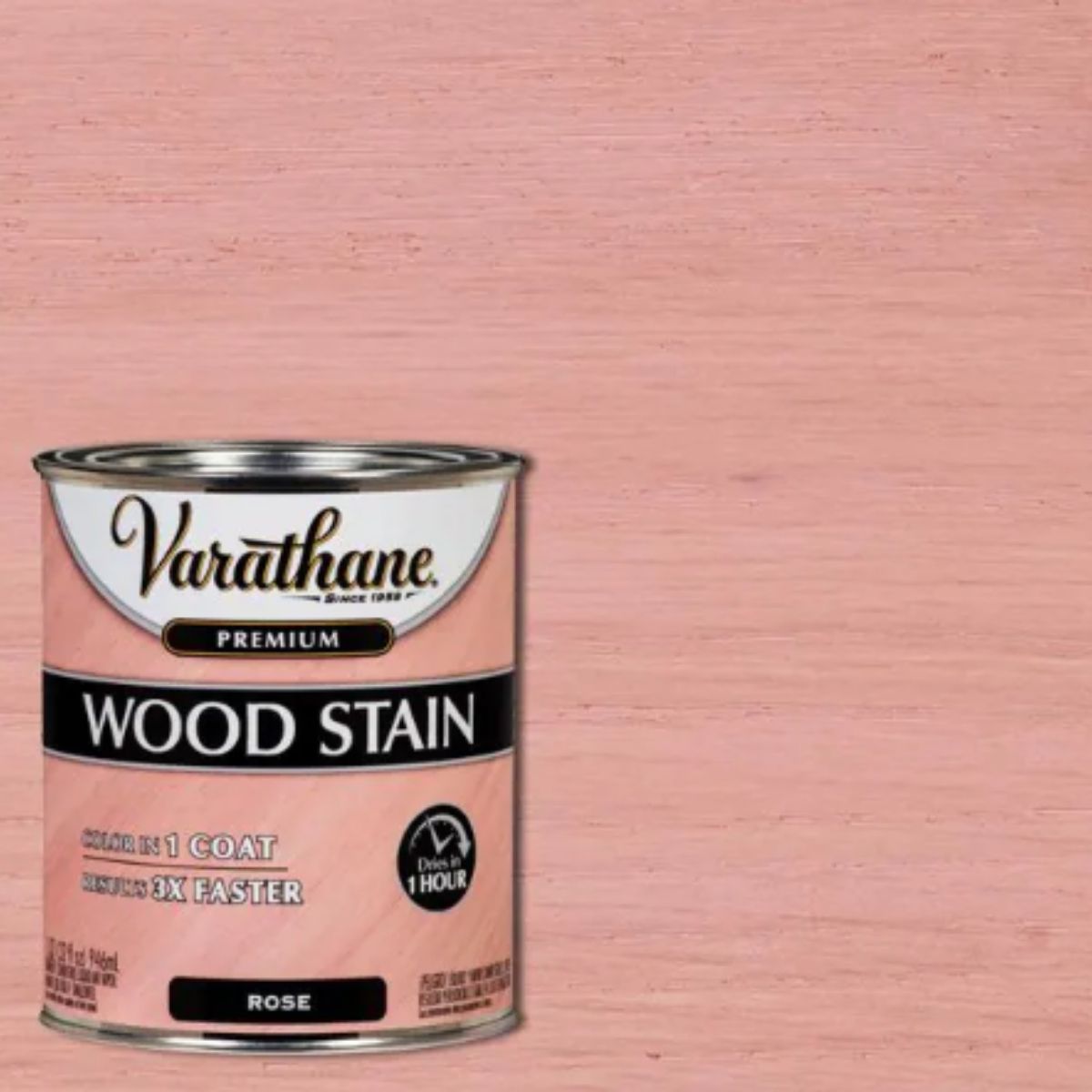 Varathane 1 qt. Rose Premium Fast Dry Interior Wood Stain delivers high-quality color enhancement in just one coat, designed to accentuate the natural beauty of interior wood surfaces such as furniture, cabinets, doors, trim, floors, and paneling. Its fast-drying formula ensures completion in only 1 hour, utilizing Nano pigments for superior color clarity and coverage. This stain saves time and effort, applying smoothly with a synthetic brush or lint-free rag without requiring pre-stain or wood conditioner. It effectively seals wood pores, enhancing grain definition with robust coverage. Available in a diverse range of fashionable and classic colors, cleanup is simple with mineral spirits, while applying Varathane polyurethane as a top coat ensures lasting protection. The product's online price includes a PaintCare fee in select states for added convenience.