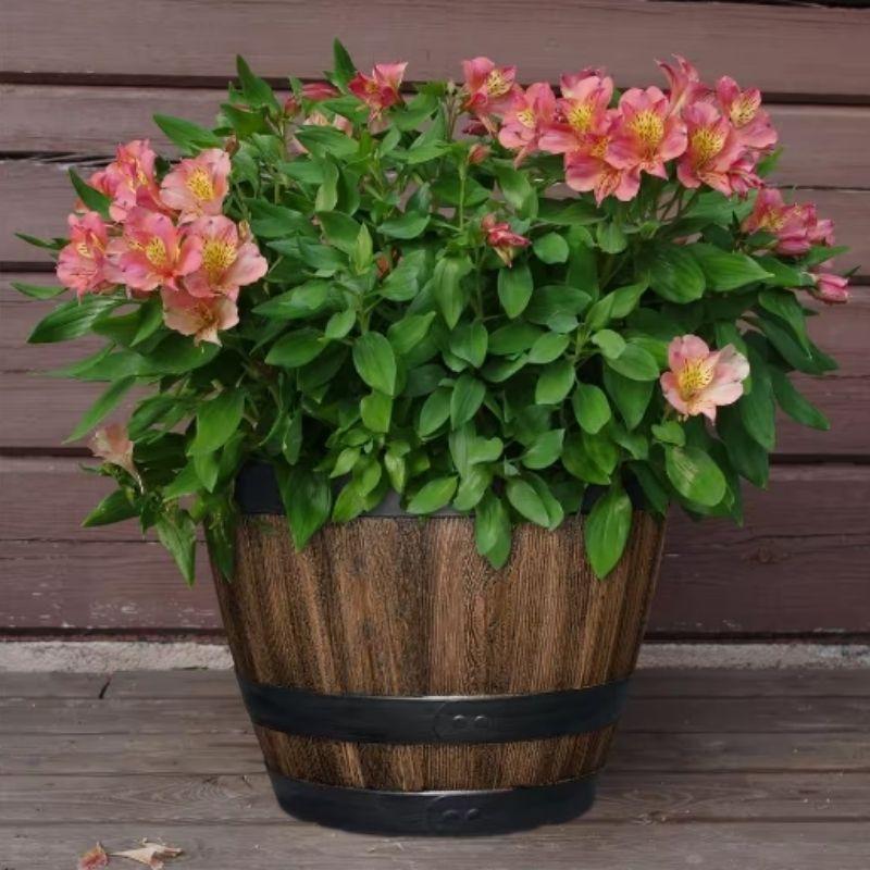 The Vigoro 12.8 in. Reedley Medium Kentucky Walnut Brown Resin Barrel Planter is a stylish and practical choice for gardening and plant display. Description: Type: Barrel planter Material: Made from durable resin with a Kentucky Walnut Brown finish, giving it a classic, rustic appearance that mimics the look of natural wood but with the advantages of lightweight and weather-resistant resin. 12.8 in. Reedley Medium Kentucky Walnut Brown Resin Barrel Planter (12.8 in. D x 10.5 in. H) Design: Features a barrel-style shape with a textured finish that resembles traditional wooden barrels. This design adds aesthetic appeal and makes it a versatile choice for various outdoor and indoor settings. Color: Kentucky Walnut Brown, a rich, deep brown that complements many outdoor and garden themes. Functionality: Ideal for planting a variety of flowers, shrubs, or small trees. The planter’s size makes it suitable for use on patios, decks, or as part of a garden arrangement. Durability: The resin material is weather-resistant and designed to withstand outdoor conditions. It is less likely to crack or rot compared to traditional wooden planters. Features: Lightweight: Easy to move and handle despite its sturdy appearance. Maintenance: Requires minimal upkeep compared to wooden planters. The resin material is resistant to fading, peeling, and cracking. This planter combines functionality with an attractive design, making it a practical and decorative addition to your gardening setup