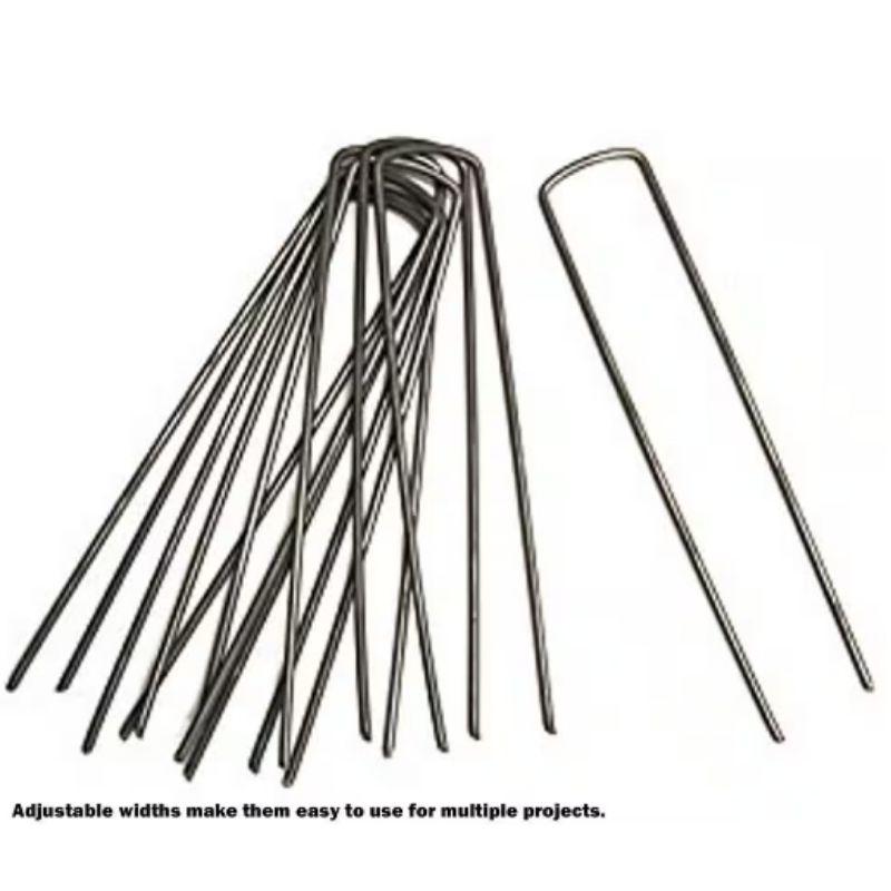 The Vigoro 3.5 in. Weed Barrier Landscape Fabric Garden Staples (75-Pack) are essential for securing landscape fabric in place. Each staple is 3.5 inches long, made from durable steel, and designed to hold fabric firmly on the soil to prevent movement and maintain effective weed control. The pack includes 75 staples, ensuring you have ample coverage for larger areas or multiple projects. Ideal for use with landscape fabrics and other ground cover materials, these staples provide reliable support and stability, making garden maintenance easier and more efficient. Dimensions Product Length (ft.):0 ft Product Thickness (mm):1 Product Width (ft.):0.33 ft Duty Type:Heavy Duty Landscape Supply Type:Fabric Stake Pack Size:75