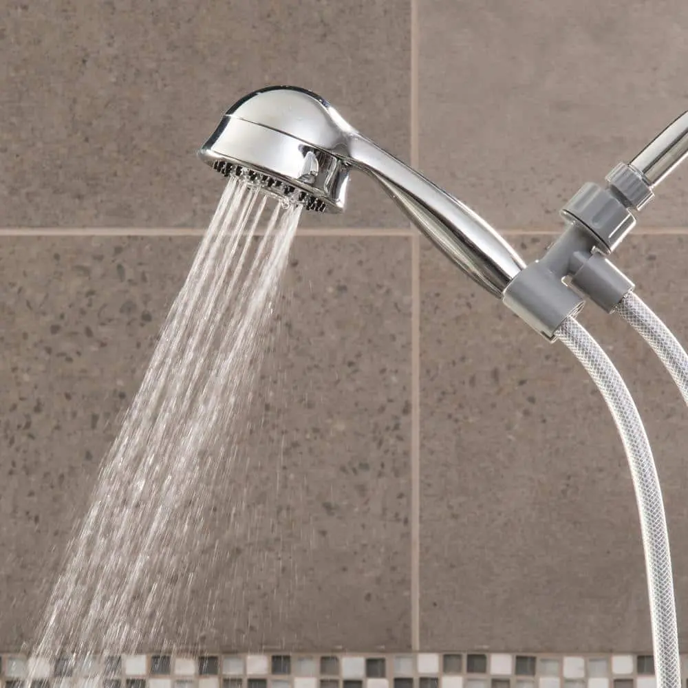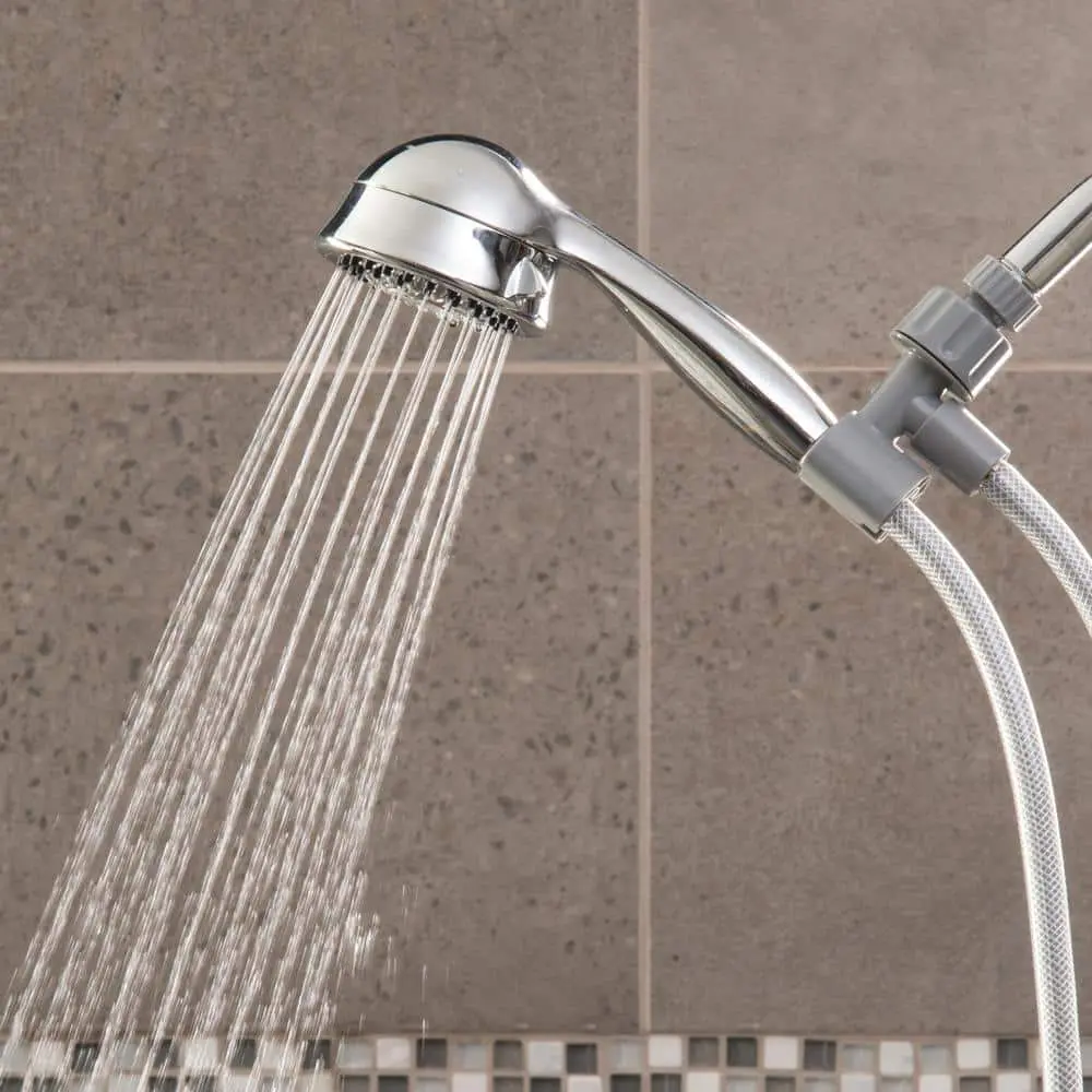 The Waterpik Vardon 5-Spray Handshower in Chrome offers a tailored showering experience with five spray settings. It features a convenient spray control ring for easy switching and a 5 ft. hose, making it perfect for bathing children and pets or reaching tricky spots. The easy-clean nozzles help reduce mineral and hard water buildup, promoting a cleaner bathroom environment.