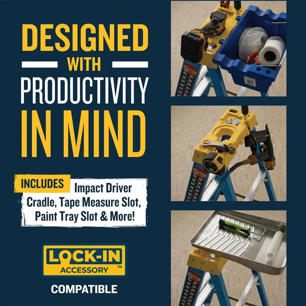 Designed for versatility and safety, the Werner 8 ft. Fiberglass Step Ladder supports up to 250 lbs., making it ideal for household projects and light-duty tasks. The multi-functional HolsterTop keeps tools organized and within reach, while slip-resistant steps provide secure footing. The EDGE bracing system enhances durability, preventing rail damage. With a 12 ft. reach, this ladder is perfect for indoor and outdoor use, including painting, renovations, and repairs.