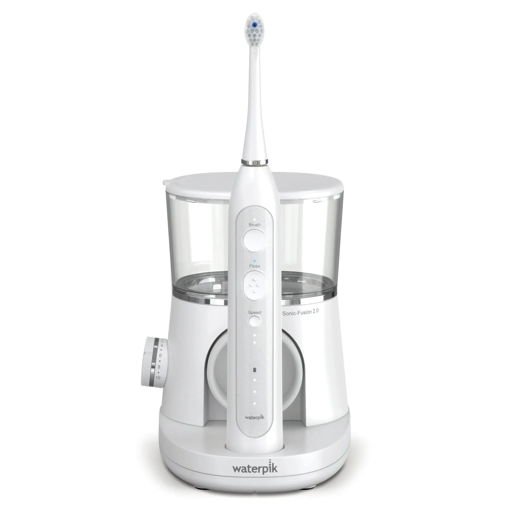 - Waterpik Sonic-Fusion 2.0 White includes brush and water floss functions in one tool.