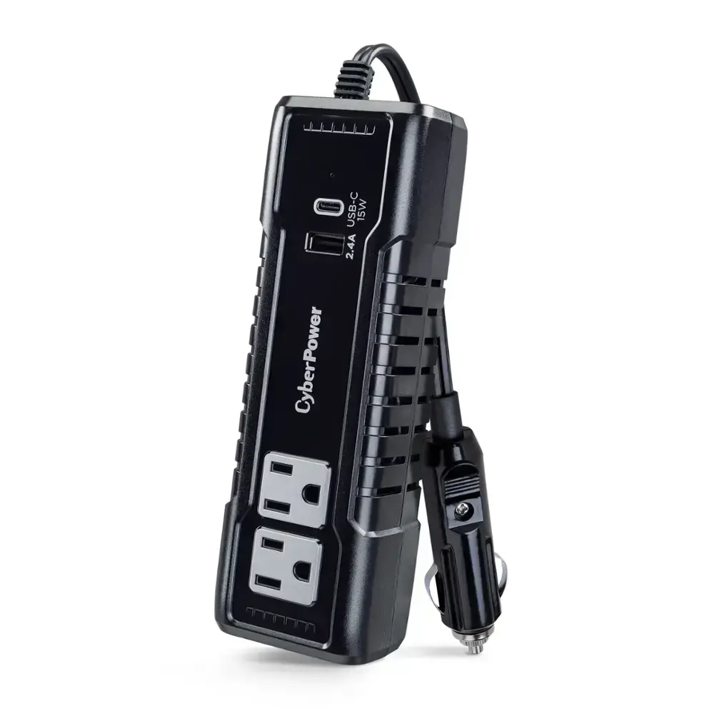 Stay powered up on the go with the CyberPower M175XUC 175W Power Inverter, featuring dual USB-A and USB-C ports for versatile charging options and a single AC outlet to power laptops and small appliances. Its compact and lightweight design makes it easy to carry, while built-in overload, overheat, and short-circuit protection ensures safe operation. Simply plug it into your vehicle’s 12V DC car adapter for convenient power wherever you travel