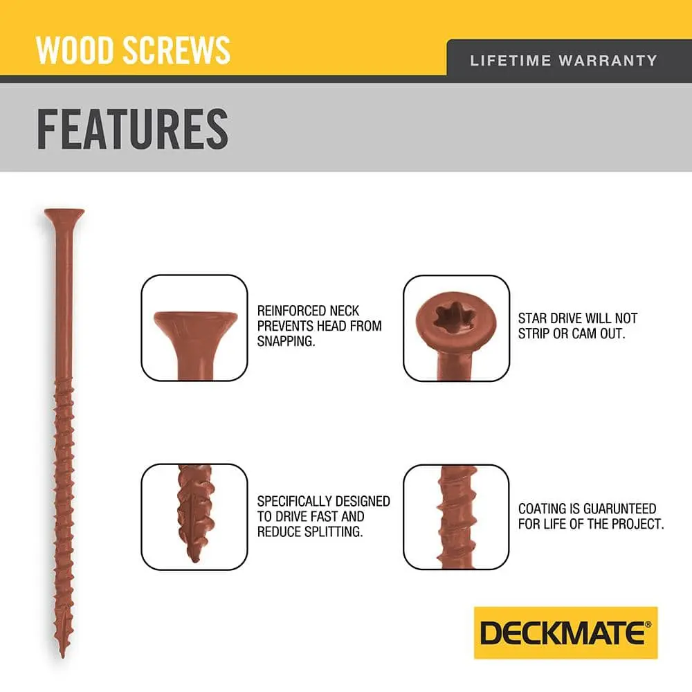 Red Deck Screws are crafted to offer exceptional weather protection while matching your decking finish. Featuring advanced star drive technology, these screws are twice as durable as Philips drive screws, eliminating the risk of stripping. The red ceramic coating ensures superior rust and corrosion resistance, making them ideal for use with treated lumber.