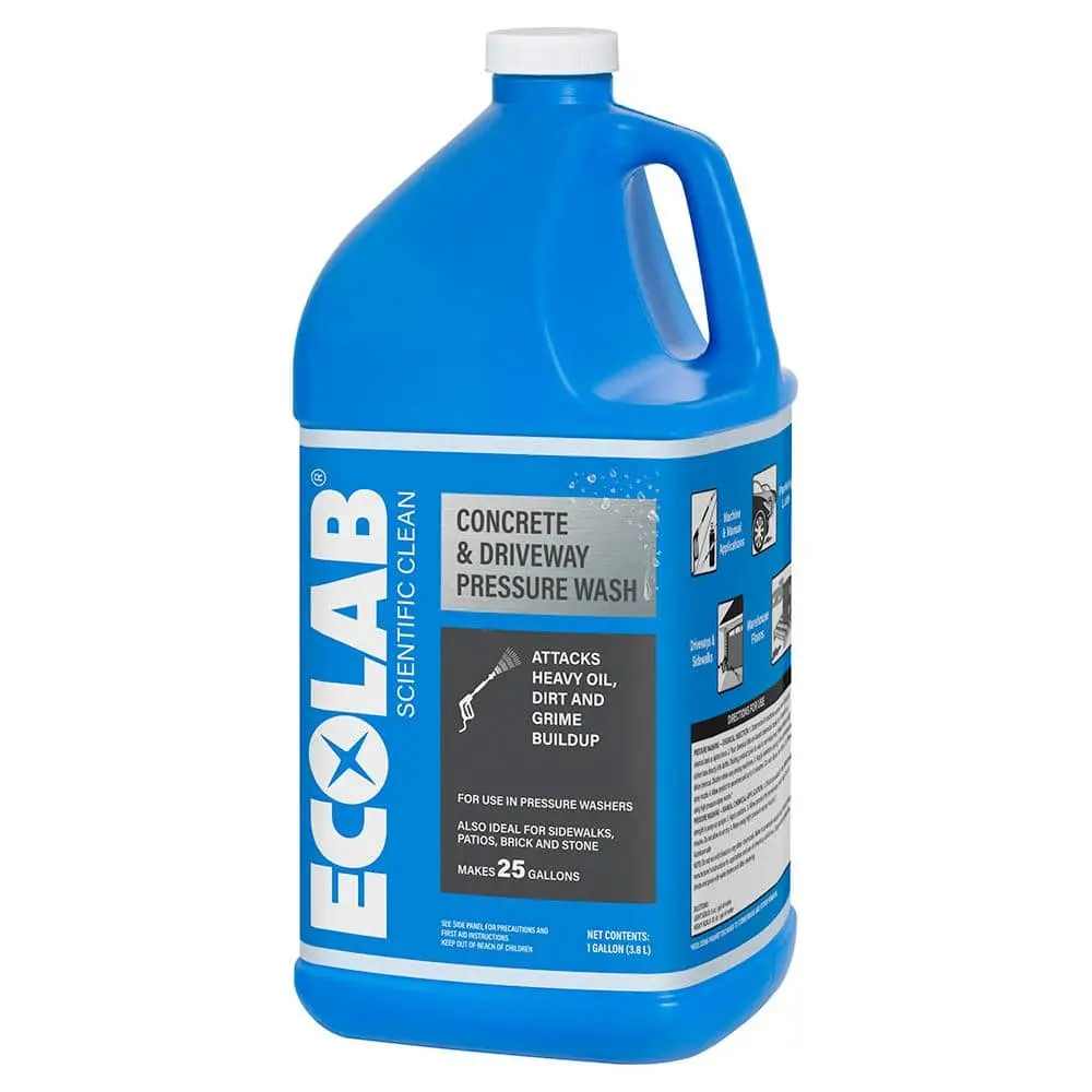 This concrete and driveway pressure wash concentrate cleaner effectively dissolves heavy oil, dirt, and grime buildup. It’s a professional-grade formula designed for use on parking lots, industrial/warehouse floors, driveways, heavy machinery, drive-thrus, and sidewalks. Suitable for surfaces like concrete, asphalt, brick, stone, and tile, it can be used with pressure washer on-board tanks, siphon hoses, or manual pump-up sprayers. The concentrate makes 25 gallons of solution. For light soils, mix 5 oz. of cleaner with 1 gallon of water; for heavy soils, use 20 oz. per gallon. Apply with a low-pressure nozzle, let it penetrate for up to 5 minutes (without letting it air dry), then rinse with high-pressure water.
