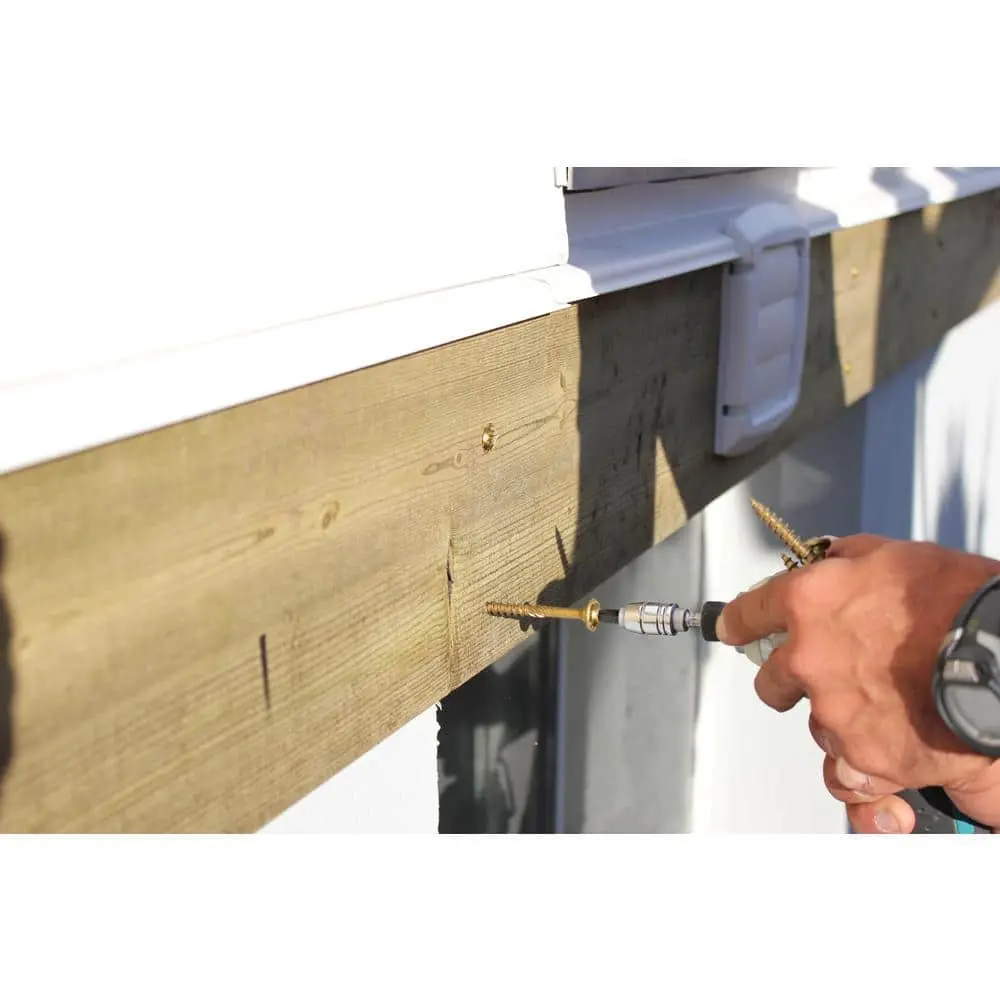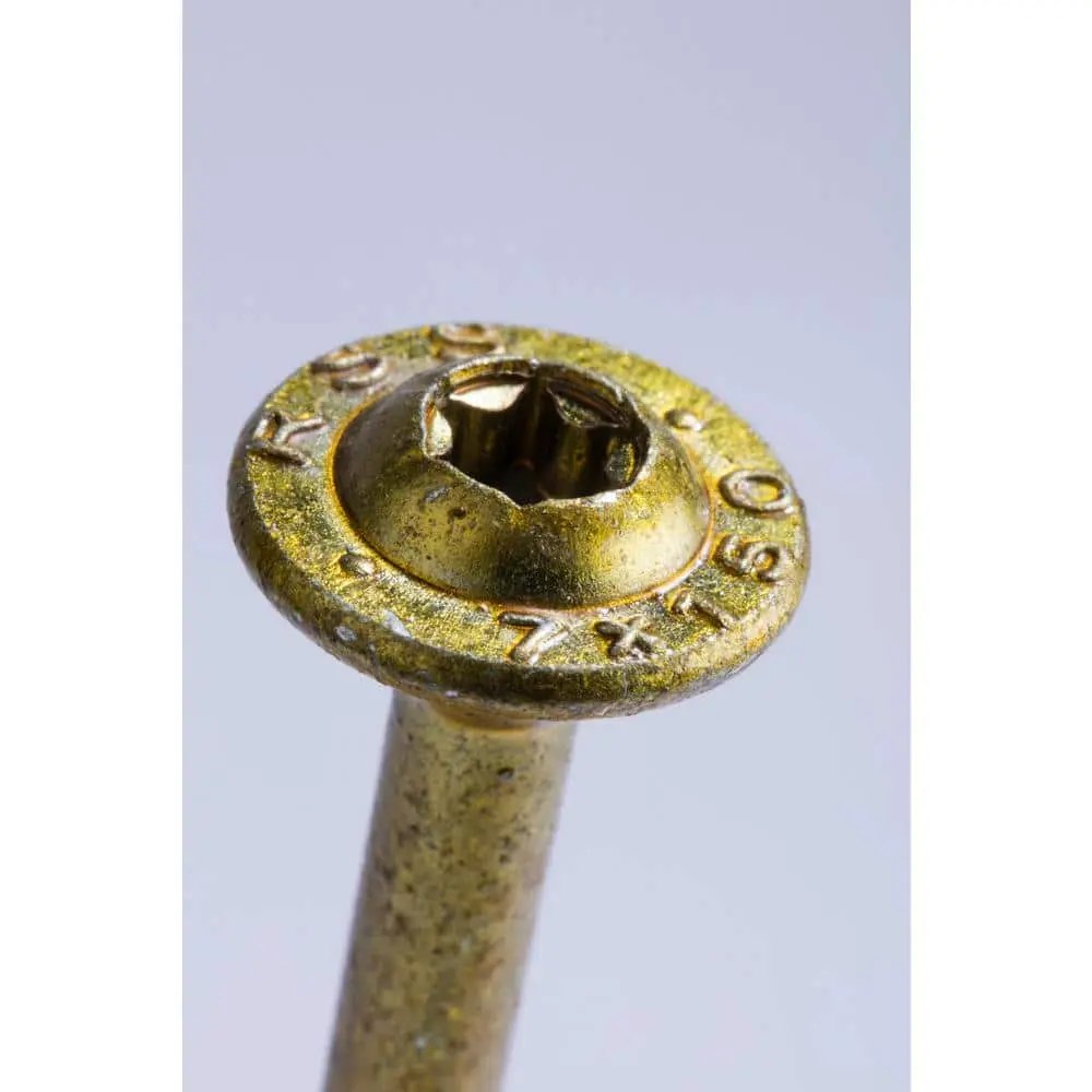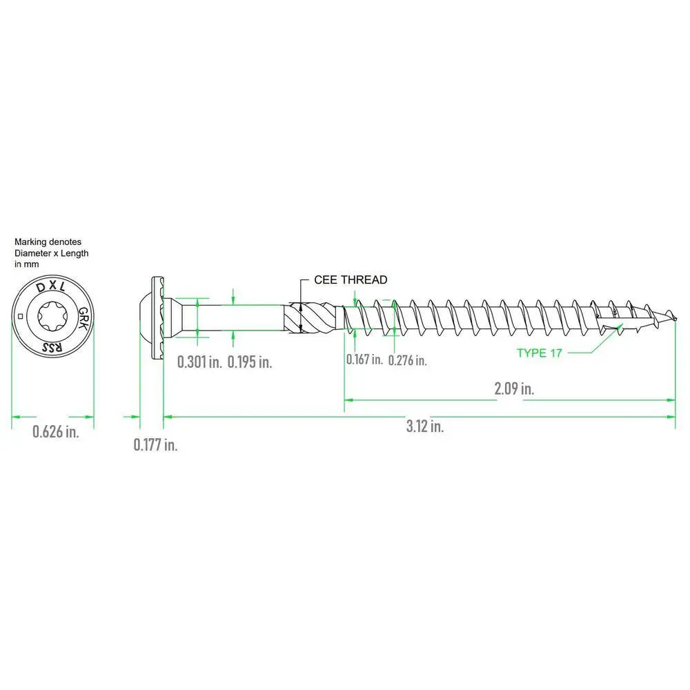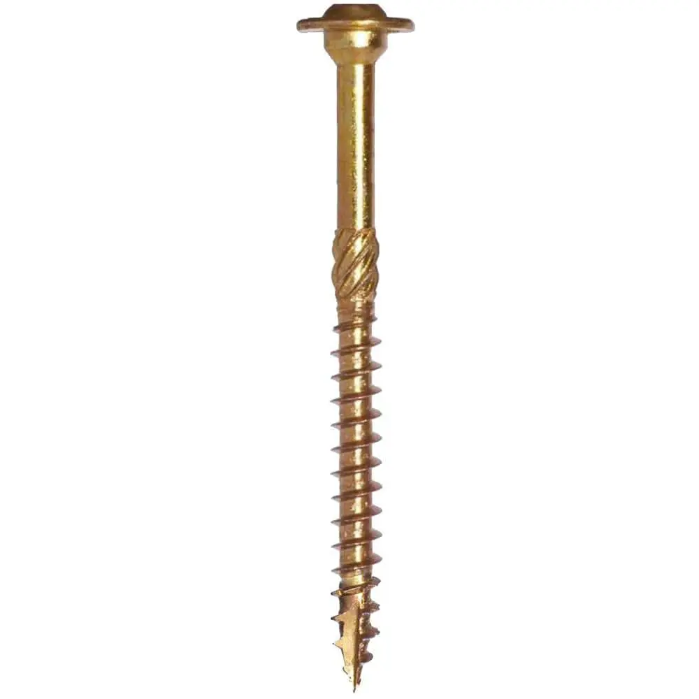 The GRK Fasteners RSS screw is crafted from hardened steel and coated with Climatek for enhanced corrosion resistance. Its sharp threads and point grip quickly into materials, including hardwood, minimizing the risk of splitting. The washer-style head has smooth edges, unlike traditional lag screws, and the shoulder beneath the washer ensures the screw is centered in pre-drilled holes.