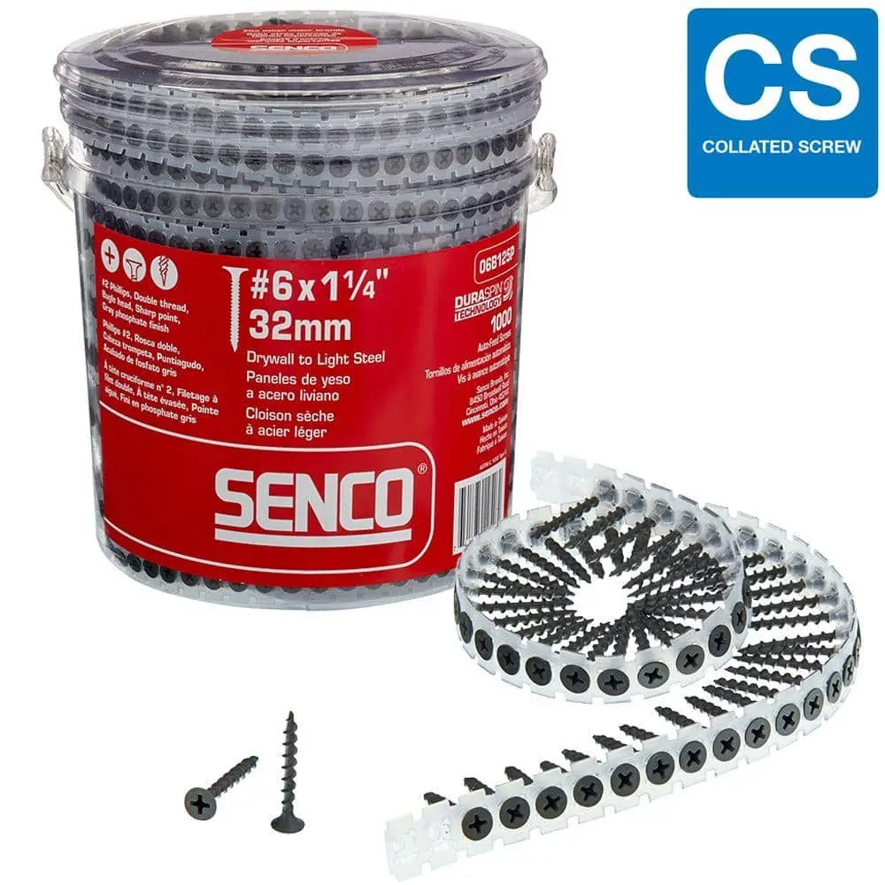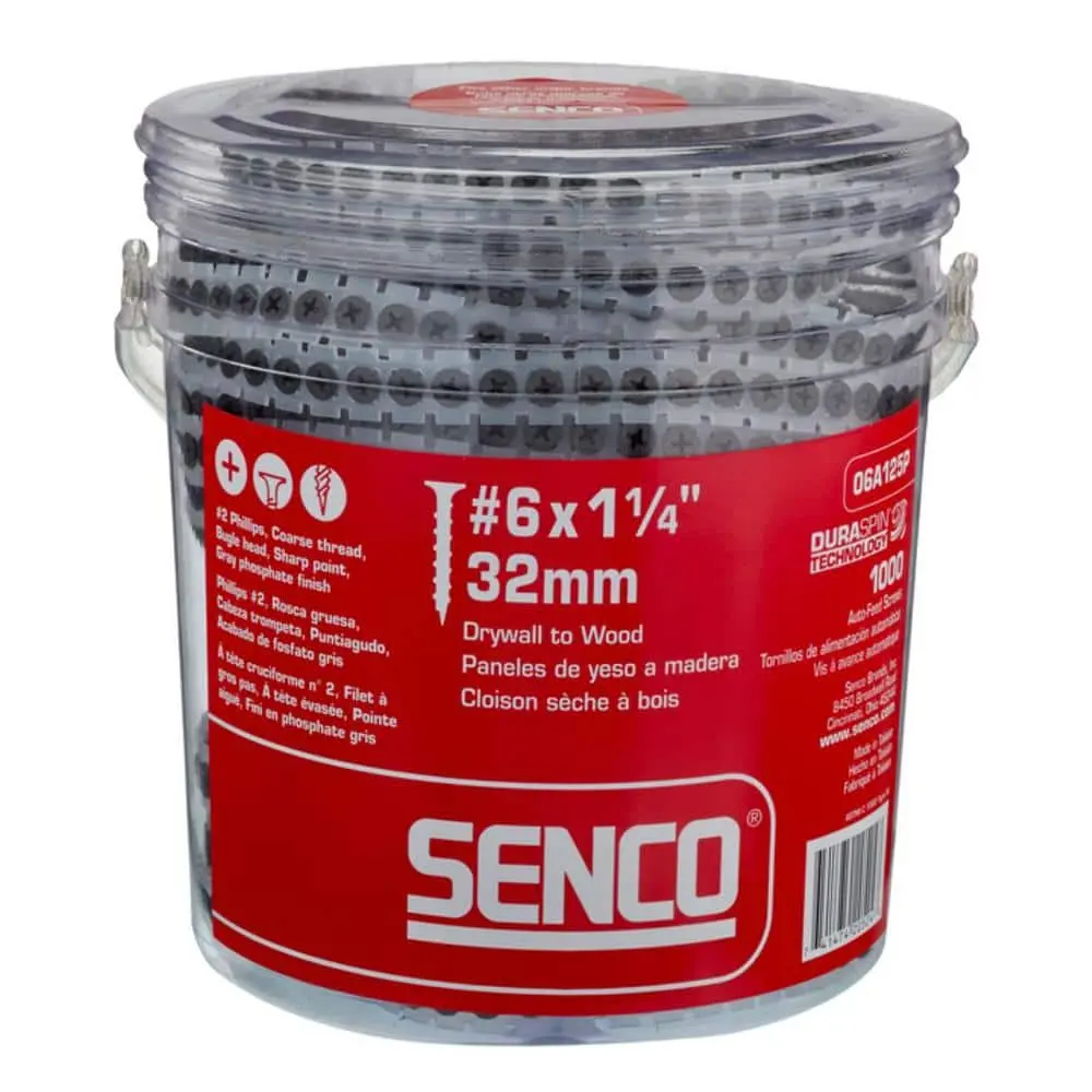 The Senco #6 x 1-1/4 in. Coarse Phillips-Drive Drywall Screws (1,000-Pack) make it easy to securely fasten drywall to wood surfaces. Featuring a durable Phillips head and coarse threads, these screws ensure quick and efficient installation. Designed for both professionals and DIYers, the 06A125P offers reliable performance for all your drywall projects.