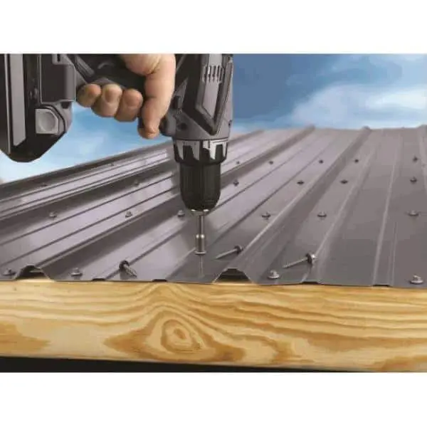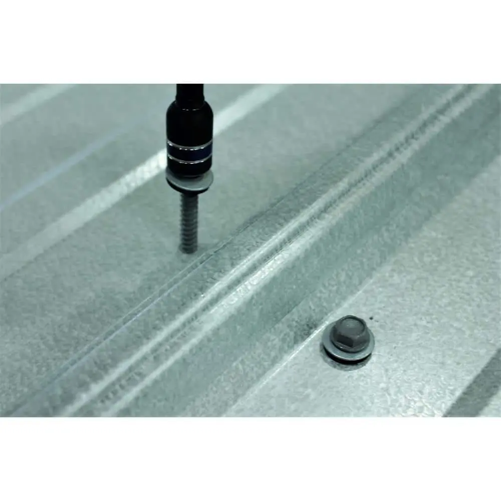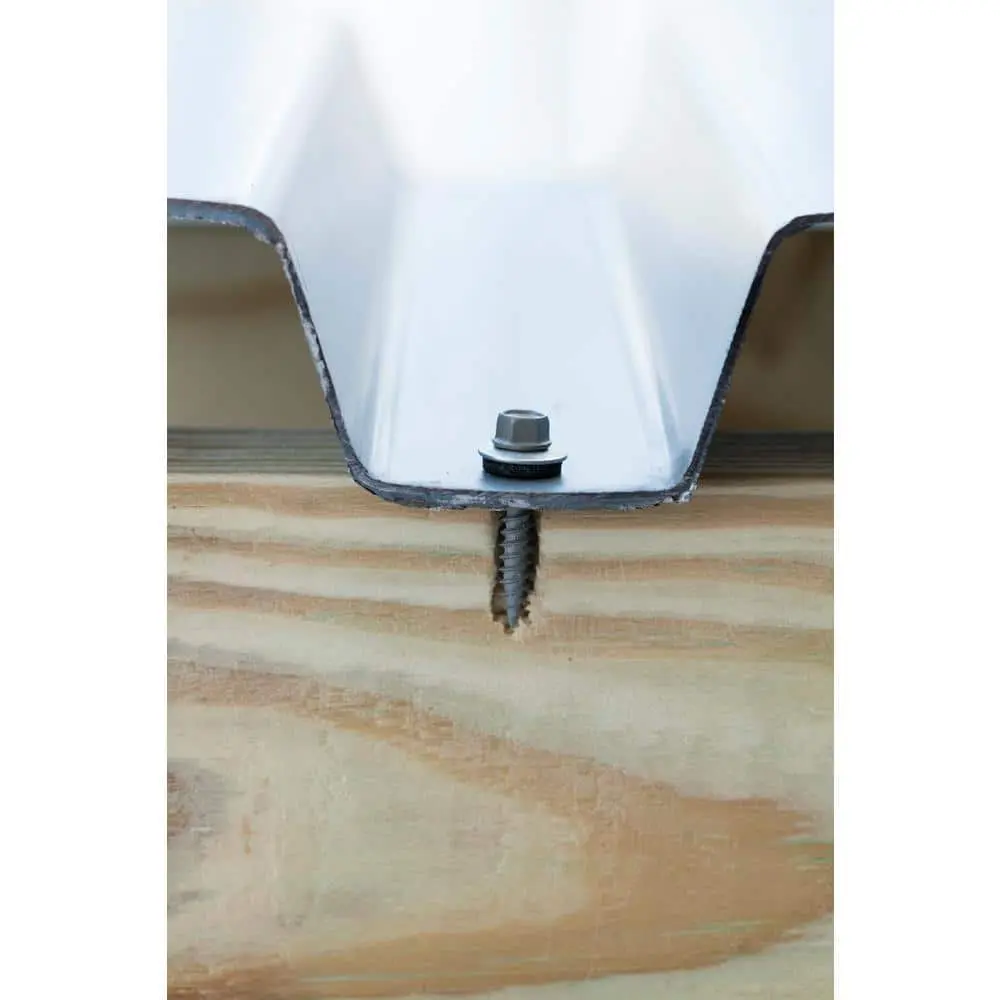Teks 9 x 1 in. Fine Steel Hex-Head Sharp Point Roofing Screws (120-Pack) offer reliable metal-to-wood fastening with strong holding power, eliminating the need for pre-drilling. The sharp self-piercing point is ideal for securely fastening corrugated roofing panels to wood structures. A self-sealing EPDM washer ensures a waterproof seal, while the premium finish provides superior corrosion resistance in tough outdoor conditions. These screws are designed for easy installation with a standard screw gun and a 1/4 in. hex drive bit.