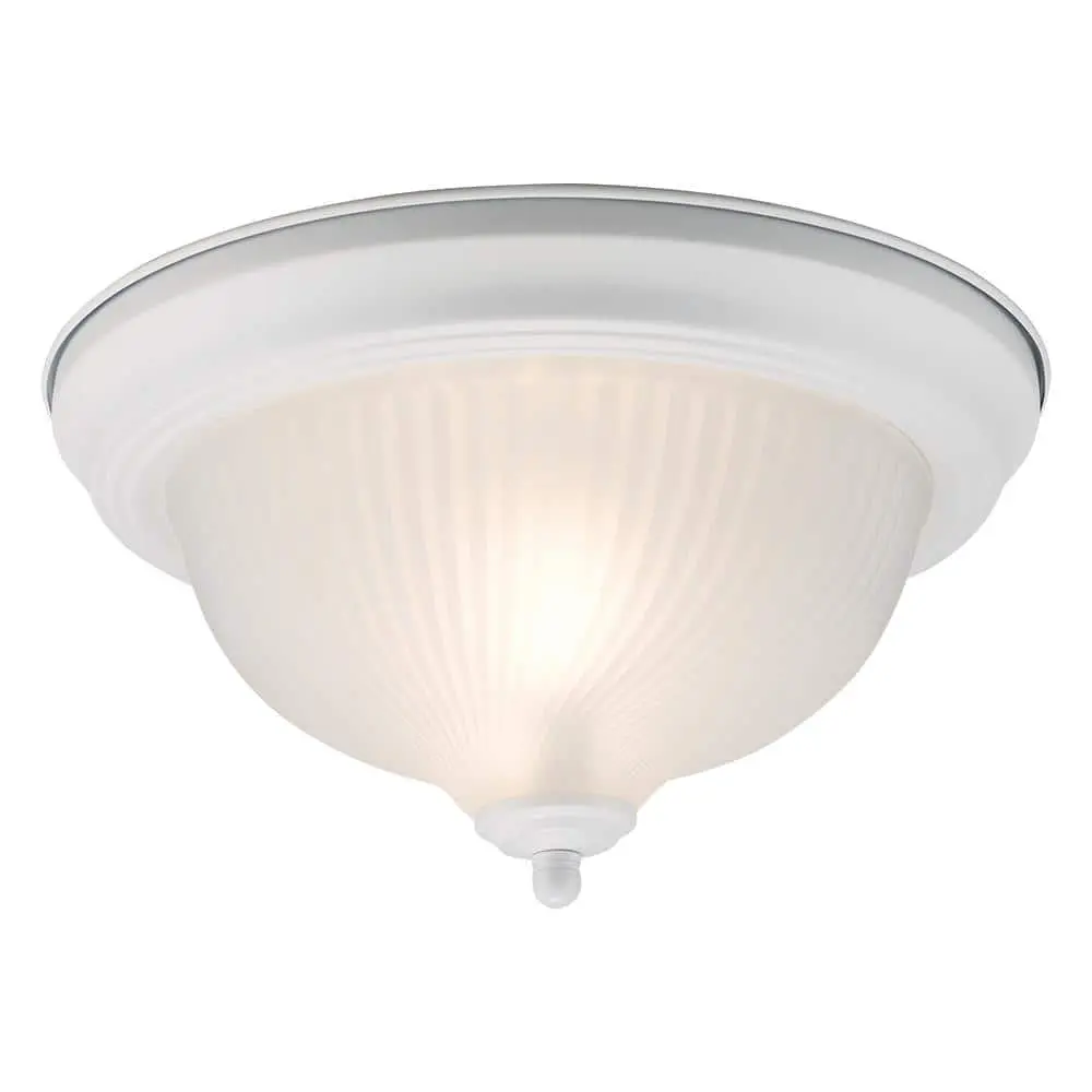This transitional flush mount light features a sleek white finish and a white frosted glass swirl shade. Its low-profile design makes it ideal for fitting into compact spaces with low ceilings. Perfect for hallways, bedrooms, kitchens, offices, and more, it offers generous lighting with a 2-bulb capacity of up to 60 watts each. Available in a variety of finishes, including black, bronze, brushed nickel, and white, it complements any decor style. Explore the collection for the perfect match to your home’s aesthetic.
