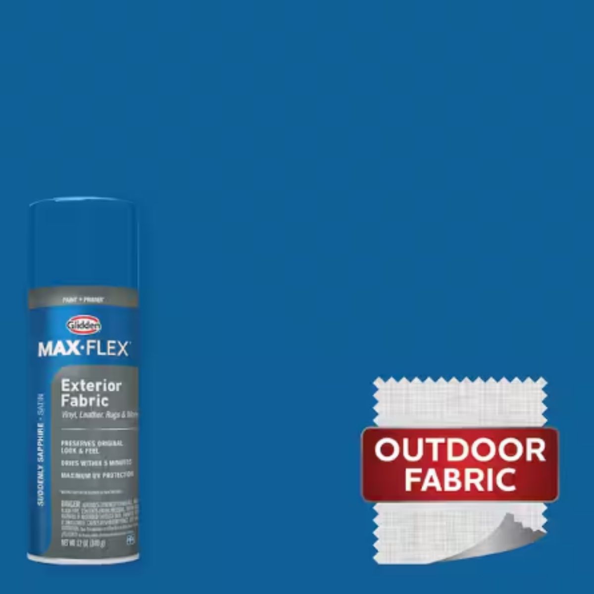 Introducing GLIDDEN MAX FLEX Exterior Fabric, an innovative paint and primer spray designed specifically for exterior fabrics such as vinyl, leather, and rugs, featuring revolutionary UV protection technology. This product offers exceptional coverage while preserving the original look and feel of your items. Its unique spray pattern provides a broader, smoother finish with fewer passes compared to traditional conical-shaped spray patterns. GLIDDEN MAX FLEX dries within 5 minutes, ensuring a flawless, durable finish without drips or streaks, allowing you to tackle your projects with confidence. There's no limit to the number of recoats you can apply for optimal coverage.
