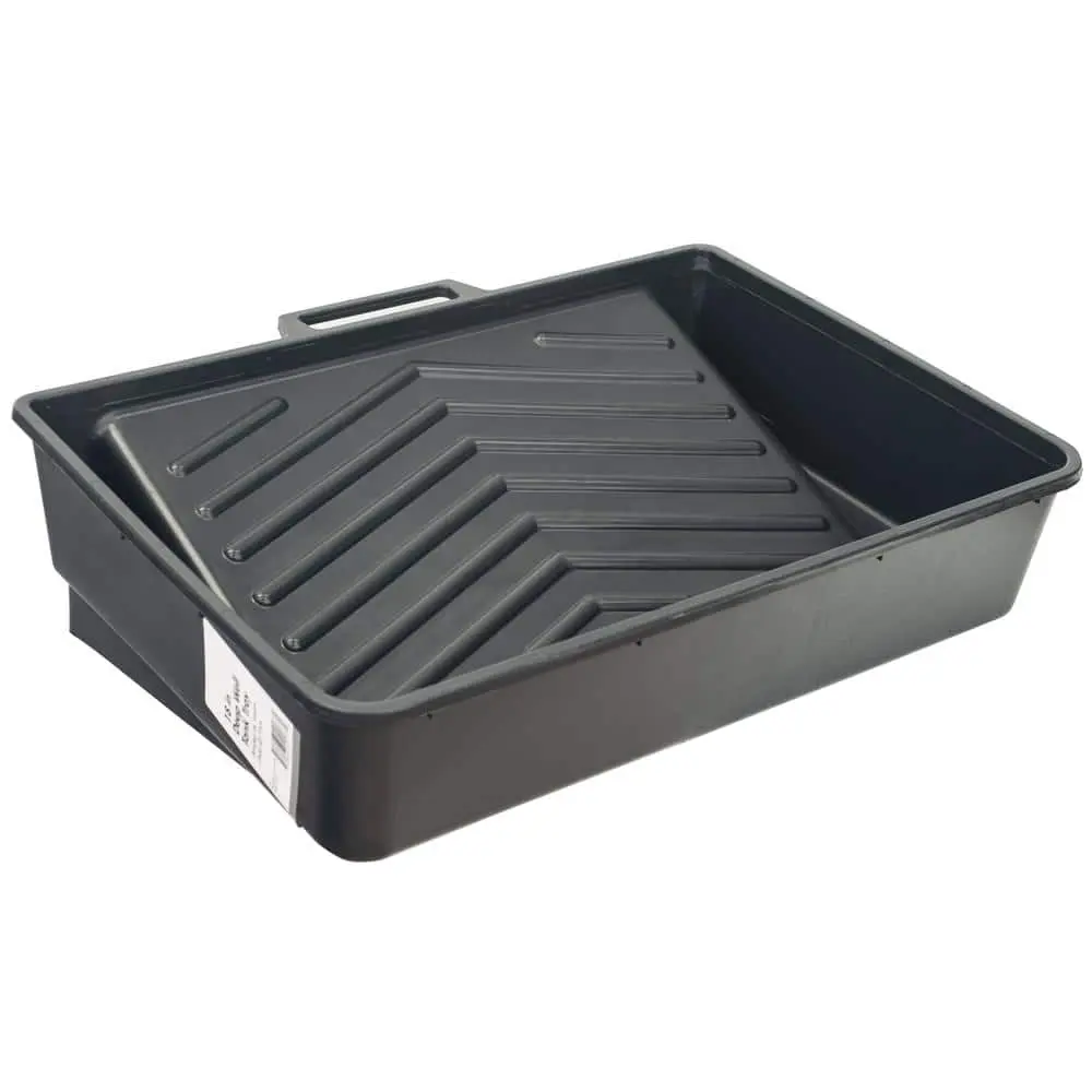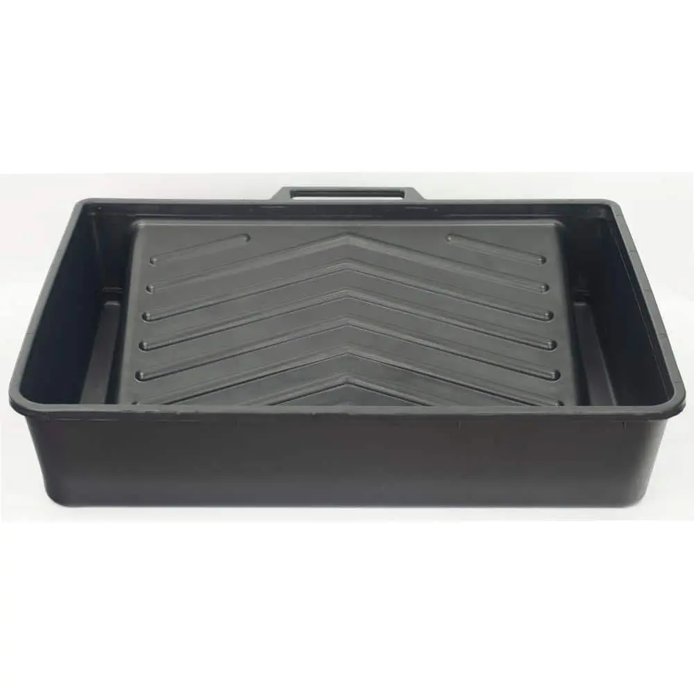 The 18 in. Plastic Deep-Well Tank Paint Roller Tray is designed for large painting projects, featuring an 18-inch size that accommodates bigger rollers and more paint. The deep-well design holds ample paint, allowing for extended use without frequent refills. Made from durable plastic, it is both lightweight and sturdy for long-lasting performance. This tray ensures smooth paint distribution, providing an even application with minimal mess. Plus, the easy-to-clean plastic material allows for a quick and hassle-free cleanup
