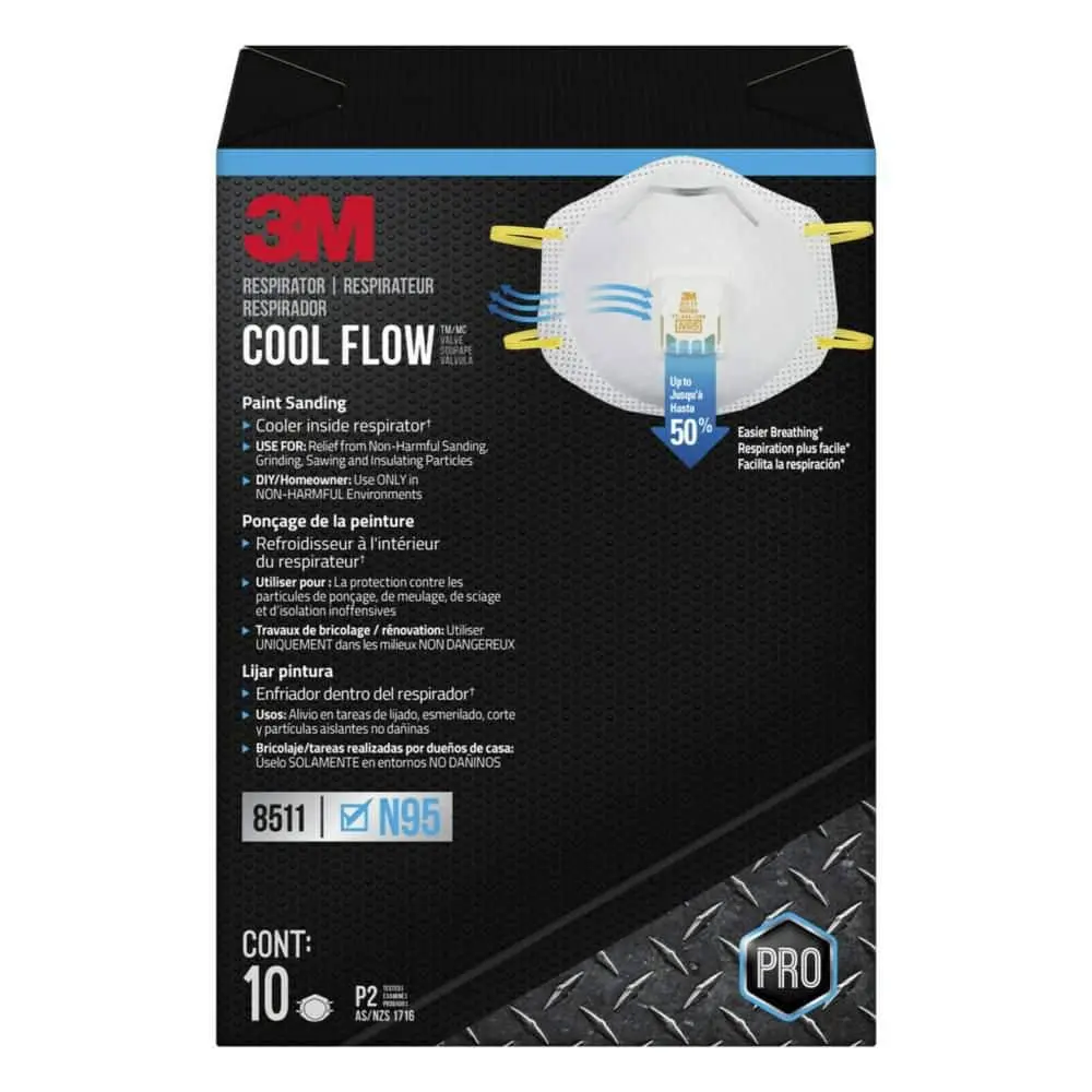 Designed for professionals, the 3M™ Cool Flow™ Valve Particulate Respirator 8511 offers reliable protection and exceptional comfort. Its Cool Flow™ Exhalation Valve efficiently vents warm, moist air for a cooler experience. The N95 respirator features Advanced Electrostatic Media to enhance particle capture while maintaining easy breathability. An adjustable M-noseclip ensures a secure and custom fit. Whether you're sanding, grinding, or hanging drywall, count on the trusted protection of this respirator.