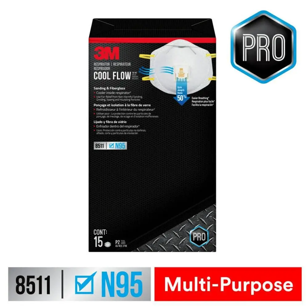 The 3M™ Cool Flow™ Valve Particulate Respirator 8511, part of the Pro Series, offers both protection and comfort for demanding projects. The innovative Cool Flow™ Exhalation Valve releases warm, moist air, making it easier to breathe. Equipped with Advanced Electrostatic Media, this N95 respirator effectively captures airborne particles while facilitating easier airflow. The adjustable M-noseclip ensures a secure fit, making it ideal for tasks like drywall installation and floor sanding.