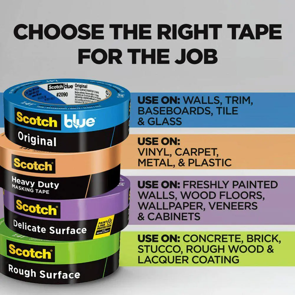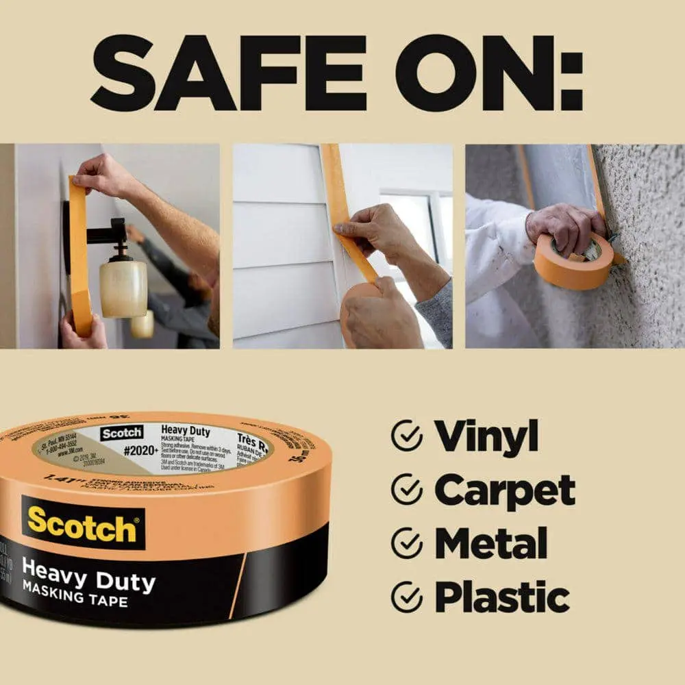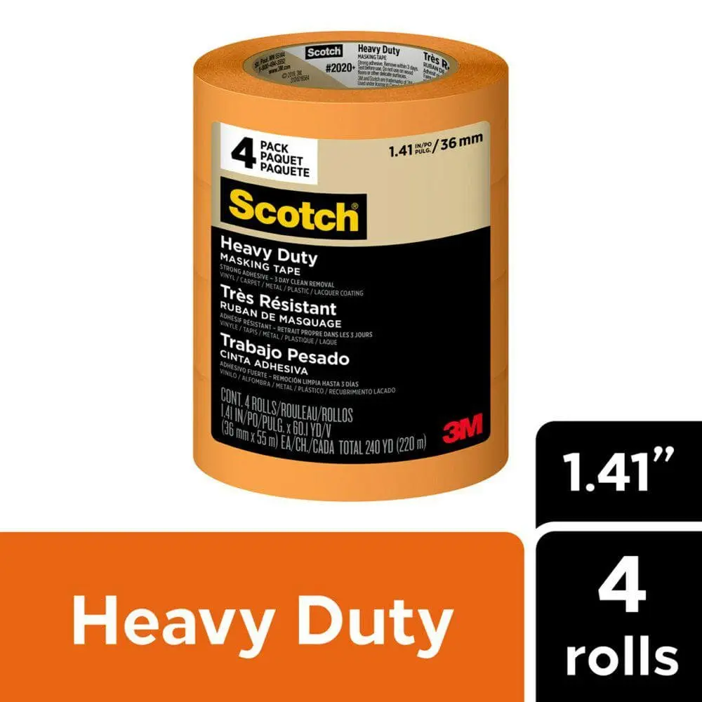 The 3M Scotch 1.41 in. x 60.1 yds. Heavy-Duty Grade Masking Tape (4 Rolls/Pack) delivers heavy-duty strength, providing strong adhesion for tough masking applications. Designed for multi-surface use, it sticks securely to wood, metal, painted walls, and more. Despite its durability, it allows for clean removal, peeling off easily without leaving sticky residue. With a size of 1.41 in. x 60.1 yds. per roll, it offers extended coverage, while the 4-roll pack ensures you have plenty of tape for large projects. Built to last, this tape is durable and reliable, resisting tearing while delivering precise masking lines