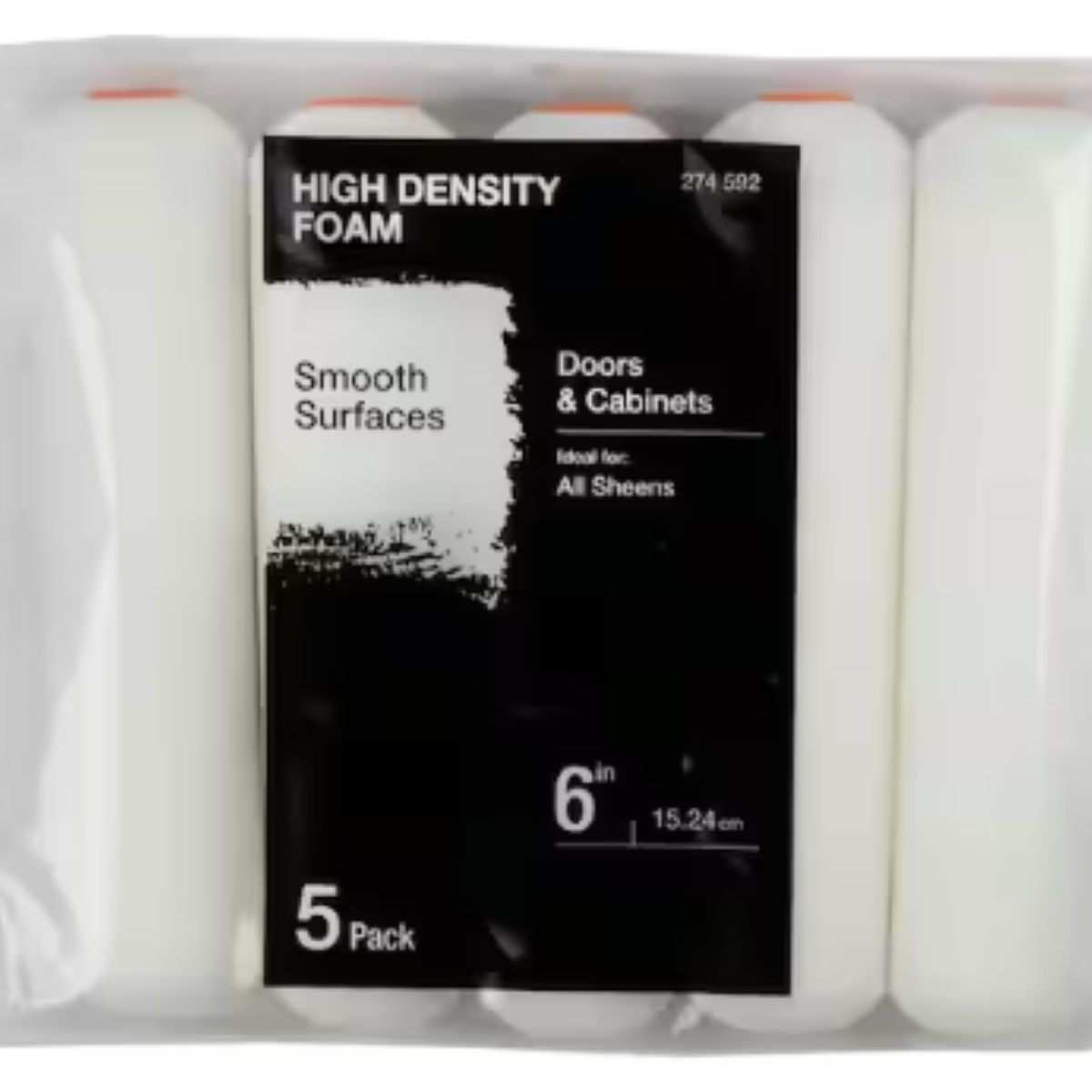 This 5-pack of 6-inch ultra-smooth, high-density foam roller covers offers great value and is recommended for use on any smooth surface, particularly with gloss paints. Ideal for tasks such as painting kitchen cabinets and metal doors, these roller covers are versatile and effective with both paints and stains. They feature high-density closed-cell foam, ensuring an extremely smooth and shed-free finish. The roller covers are designed with wrap-around ends, enabling efficient painting in corners and tight spaces, making them suitable for precise and detailed painting projects.