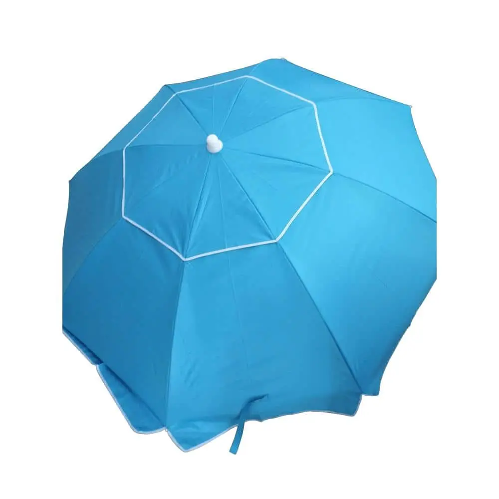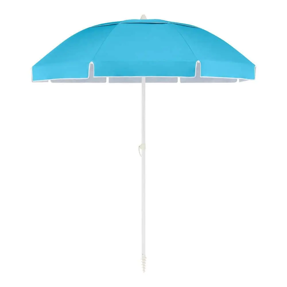 This 7 ft. Beach Umbrella with manual tilt offers a lightweight and portable design, perfect for beach outings. It features a rust-resistant, powder-coated white pole and comes with a matching carrying bag for easy transport. The round canopy is crafted from outdoor-rated polyester fabric, providing UV protection and water resistance for your outdoor enjoyment.