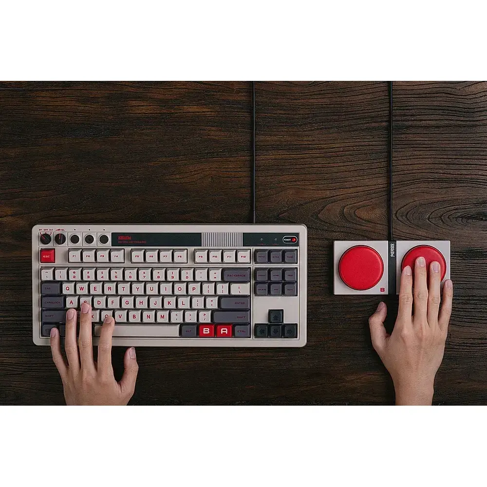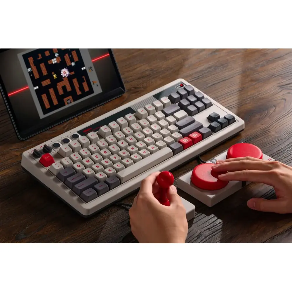 The 8BitDo Retro Mechanical Keyboard (N Edition) combines nostalgic design with modern functionality, making it a must-have for gamers and retro enthusiasts. Featuring Kailh Box White V2 mechanical switches, it delivers satisfying tactile and audible feedback for a premium typing experience. The hot-swappable PCB allows users to easily customize their switches without soldering. Designed for versatility, it supports Bluetooth, 2.4GHz wireless, and wired USB connections for seamless connectivity across devices. Personalization is at your fingertips with programmable A and B keys, as well as additional programmable buttons for custom shortcuts. Enhancing both gaming and productivity, it includes the exclusive 8BitDo Super Stick Joystick and Dual Super Buttons. The durable dye-sublimation PBT keycaps ensure long-lasting quality, while the independent control panel provides intuitive access to settings without complex shortcuts. This keyboard perfectly blends retro aesthetics with modern convenience, delivering a unique and functional experience