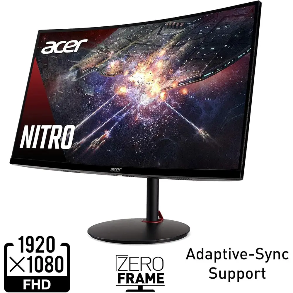 Introducing the Acer Nitro XV270 27" Curved Gaming Monitor, designed to elevate your gaming experience. With a 1500R curve and Full HD (1920 x 1080) resolution, it delivers vibrant, sharp visuals with a broader view, perfect for high-definition entertainment and immersive gaming. The zero-frame design maximizes screen space, ensuring an edge-to-edge display.
