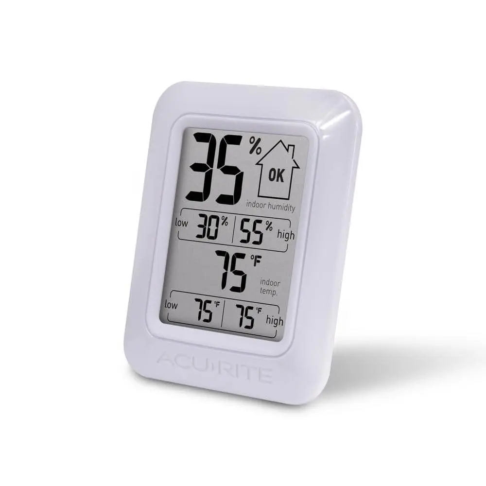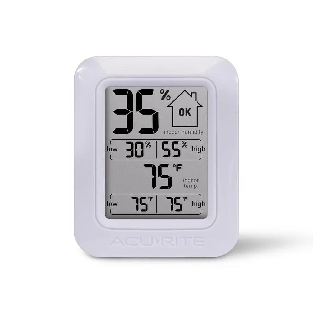 Maintaining proper indoor humidity offers significant health benefits, including improved skin, reduced allergens, and prevention of mold, bacteria, viruses, fungi, mites, and other asthma triggers. The AcuRite Digital Humidity and Temperature Monitor helps you easily monitor your indoor environment with a combination humidity gauge and thermometer. The large, clear LCD screen displays current humidity and temperature, daily high/low readings, and a comfort level icon that indicates whether the humidity is low, high, or ideal. Compact and portable, the monitor features a magnetic backing for fridge attachment or can stand upright for tabletop use. With AcuRite, accuracy is guaranteed.