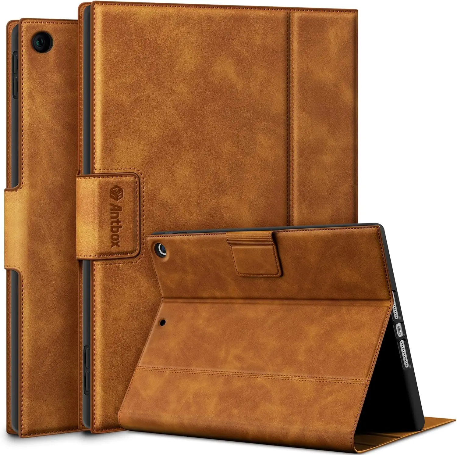The Antbox Case for iPad 9th/8th/7th Generation (10.2-inch) is a hybrid PU leather case offering protection and functionality. It includes a built-in pencil holder, a flexible TPU back cover for durability, and an ergonomic stand mode for comfortable typing and viewing. The auto sleep/wake feature helps conserve battery life, and it offers precise cutouts for all buttons and ports. This case is designed specifically for iPad models A2602–A2605, A2270–A2430, and A2197–A2200.