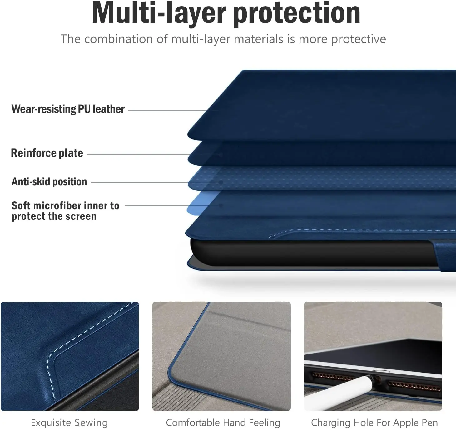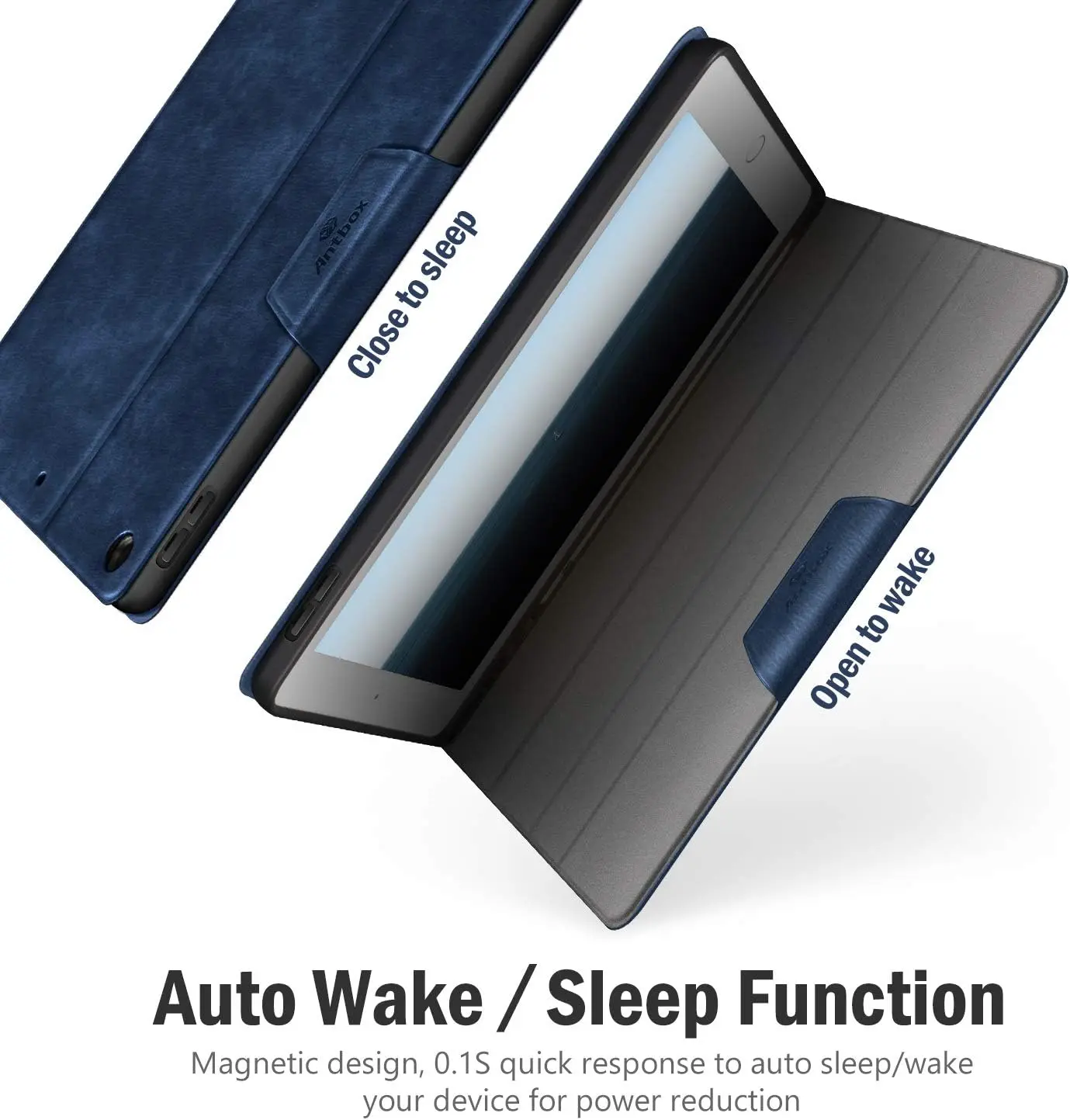Antbox 10.2 Inch Case for iPad 9th/8th/7th Gen with Pencil Holder Vegan Leather Smart Cover (NavyBlue)