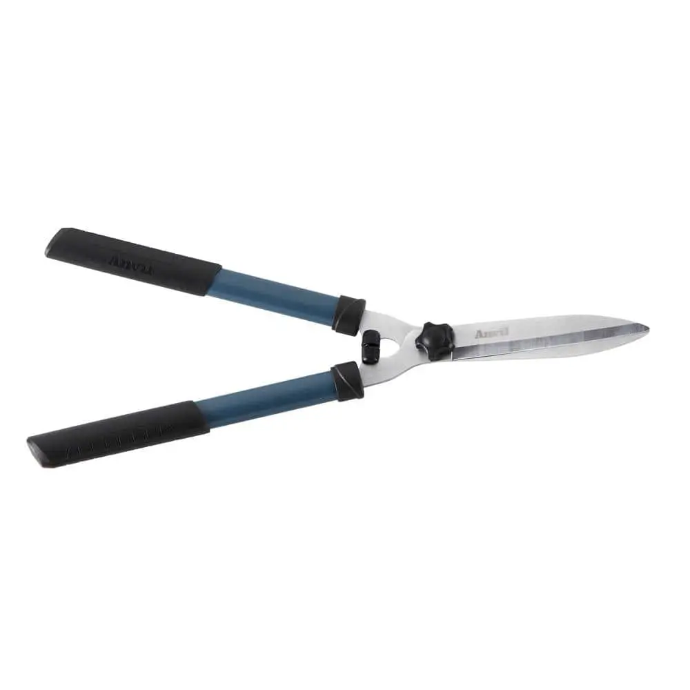 The Anvil 23 in. Hedge Shear is perfect for trimming and shaping fresh growth on hedges and shrubs. Its ergonomic design with grooved grips ensures comfortable handling during use. The hardened steel blades offer precise cutting and long-lasting durability.